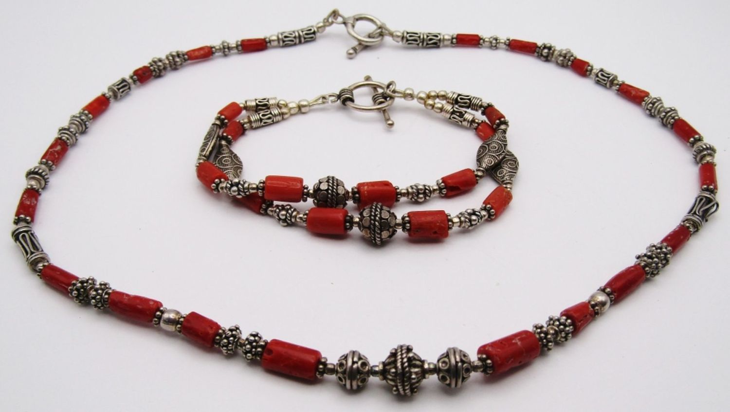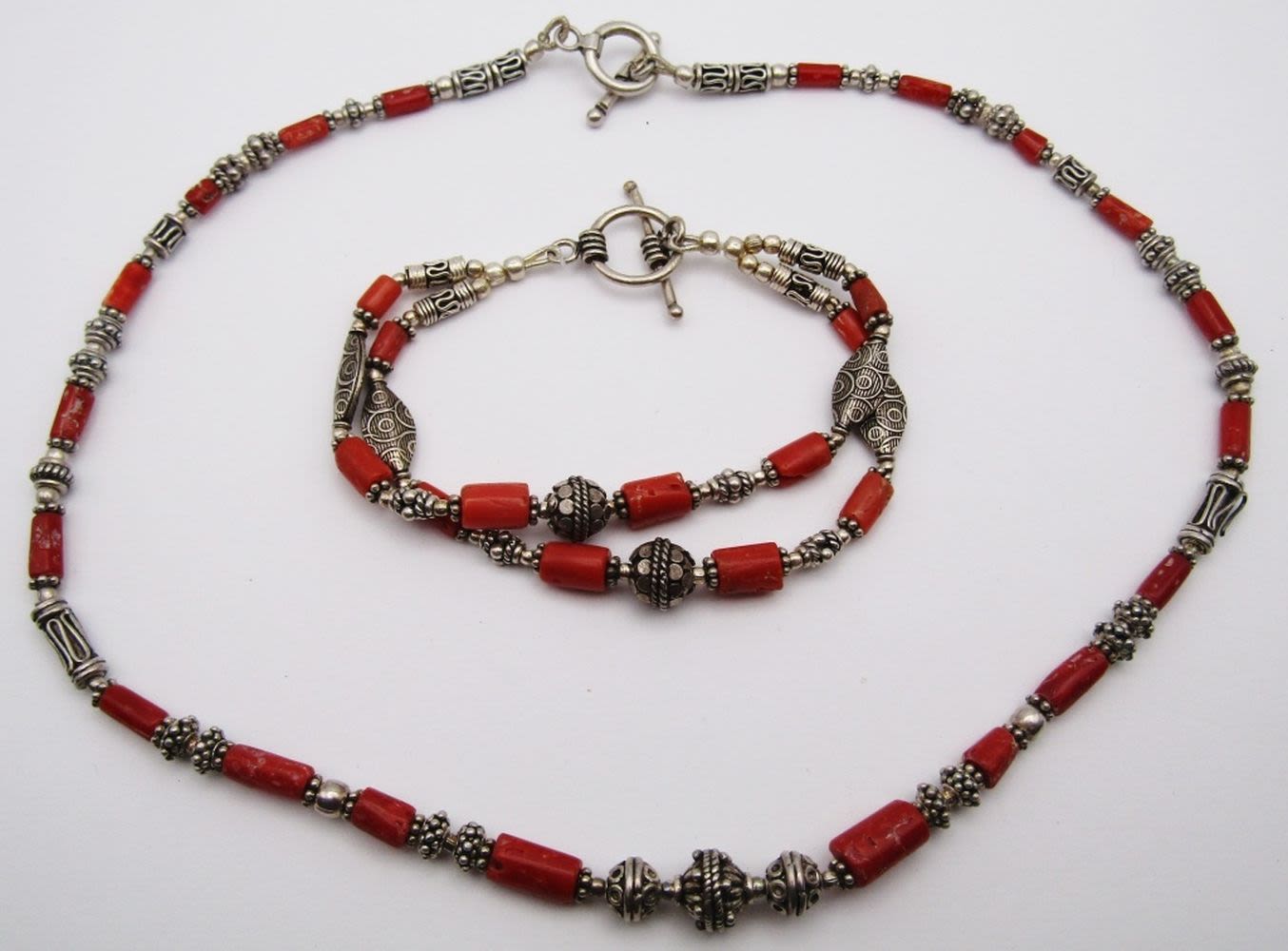 WITH MATCHING DOUBLE STRADED BRACELET-TOGGLE CLOSURE-NECKALCE MEASURES 18 INCHES AND BRACELET MEASURES 7.5 INCHES-TOTAL 32 DWT