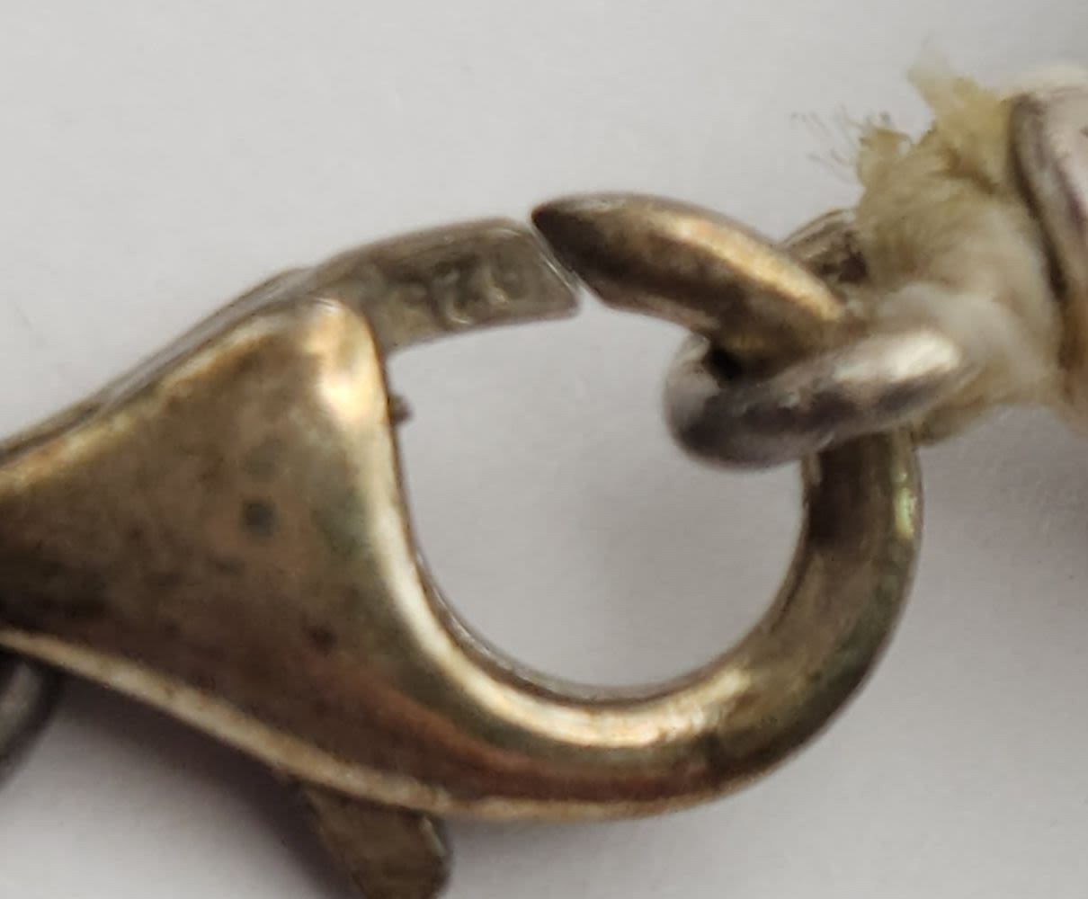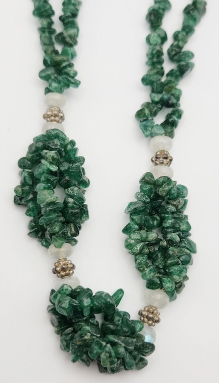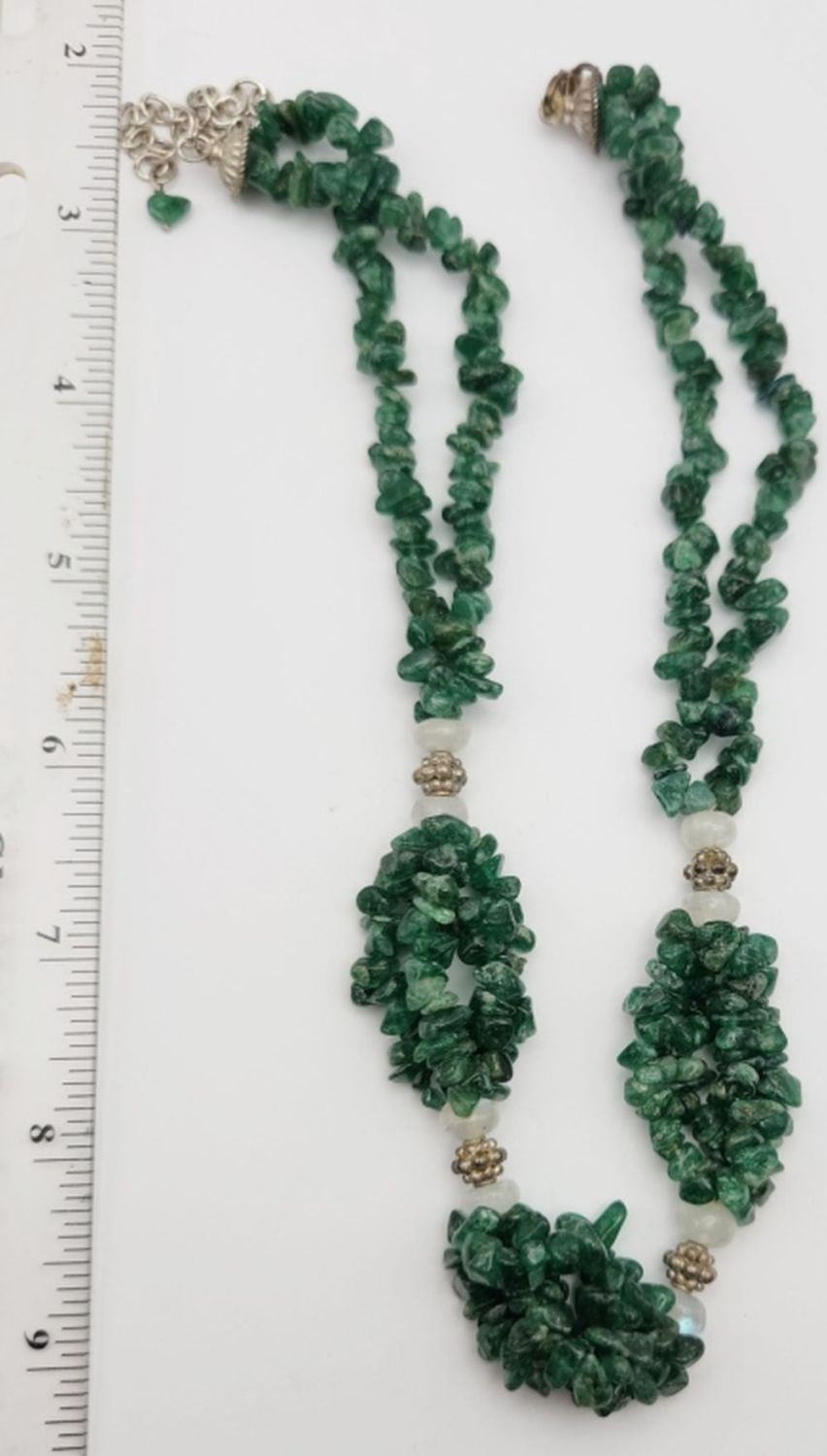 21″ LONG – NATURAL GREEN STONE & STERLING BEADS (clasp needs light repair)