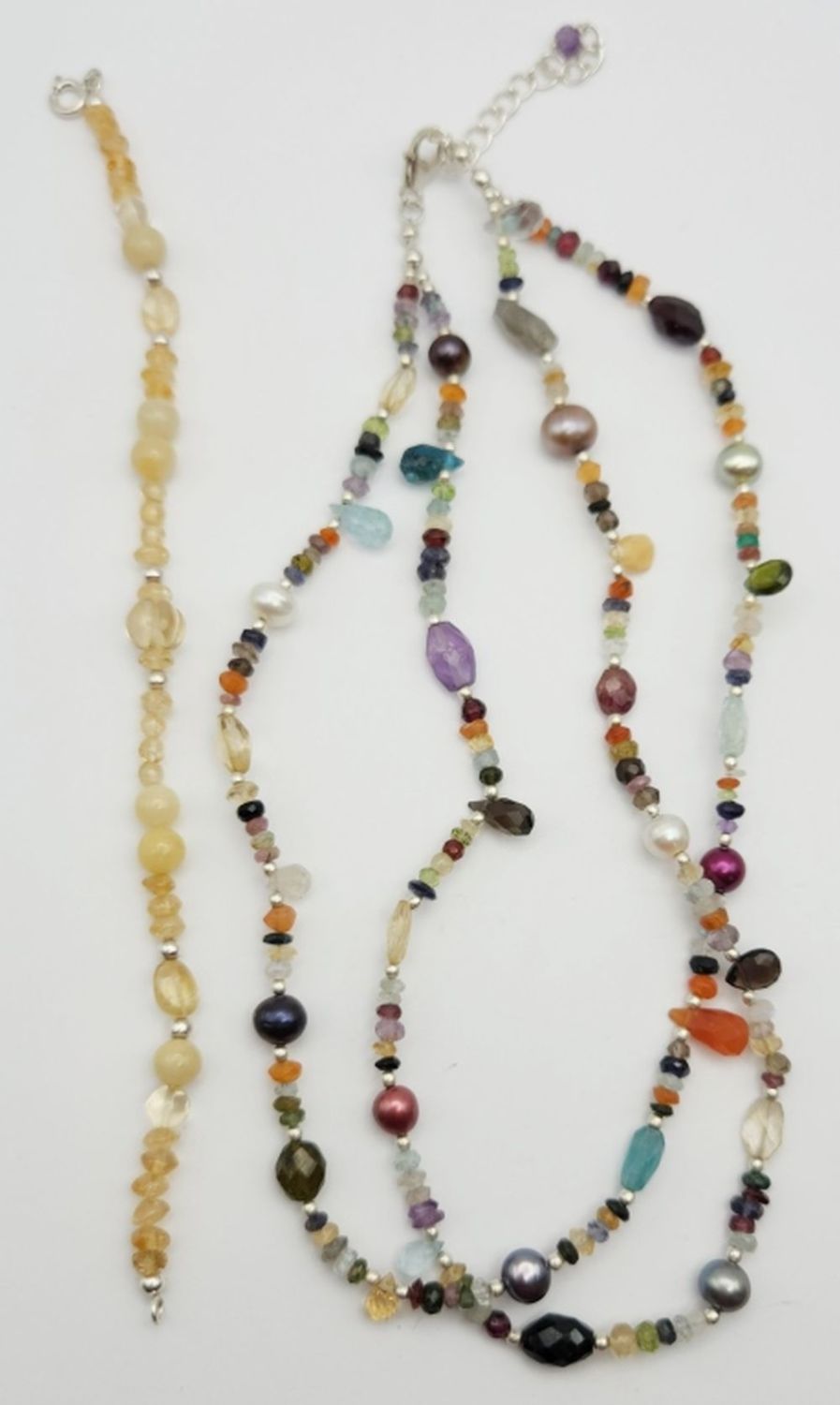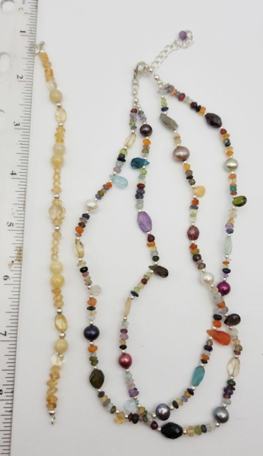 BRACELET. NECKLACE MADE OF MULTI COLOR STONES AND BEADS 24 DWT TOTAL