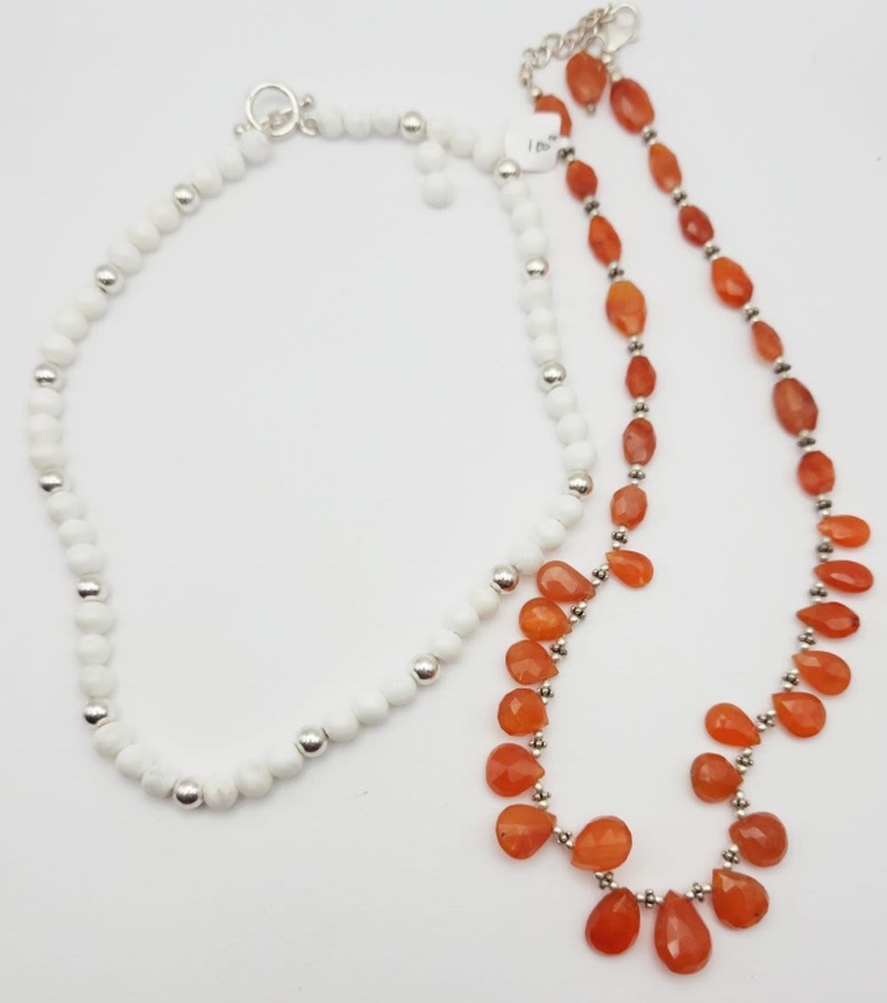 ORANGE KYANITE & STERLING COMES WITH 2 WHITE CORAL REPLACEMENT BEADS 34 DWT TOTAL