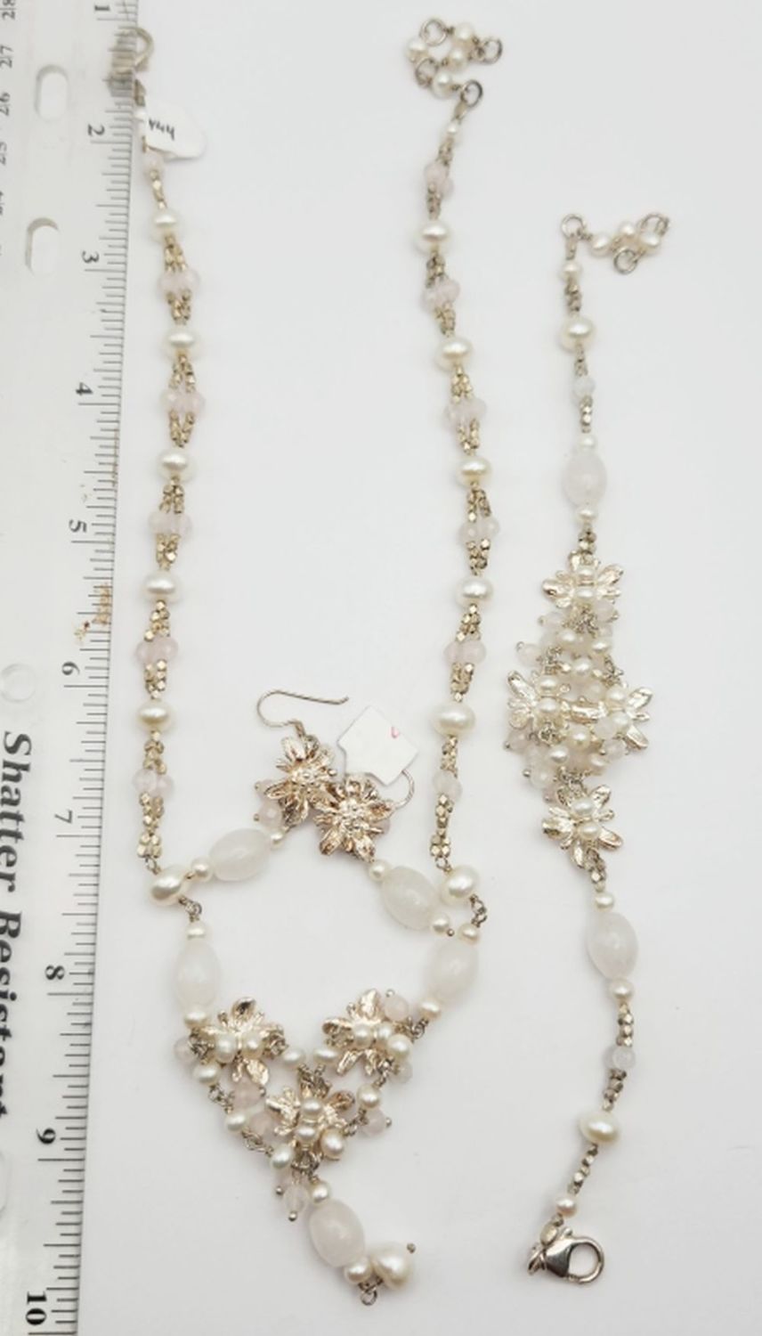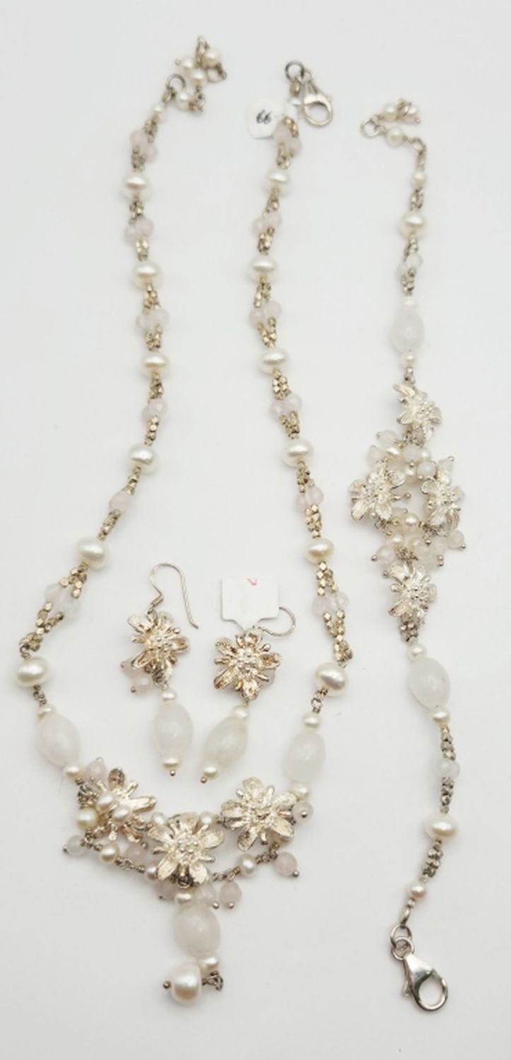 MATCHING NECKLACE, EARRINGS AND BRACELET. NECKLACE – 18.5″ LENGTH & 2″ EARRINGS & 9″ BRACELET 32 DWT