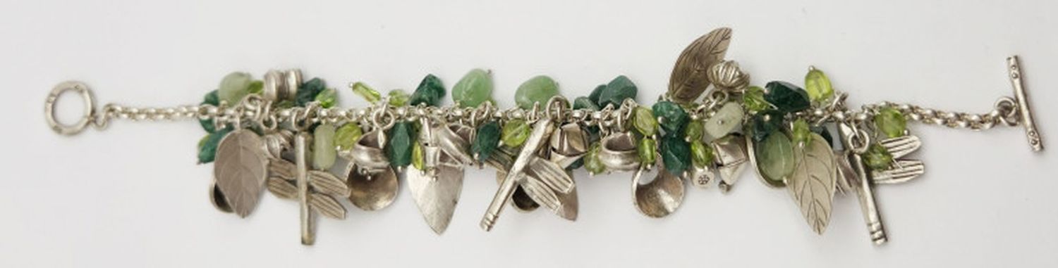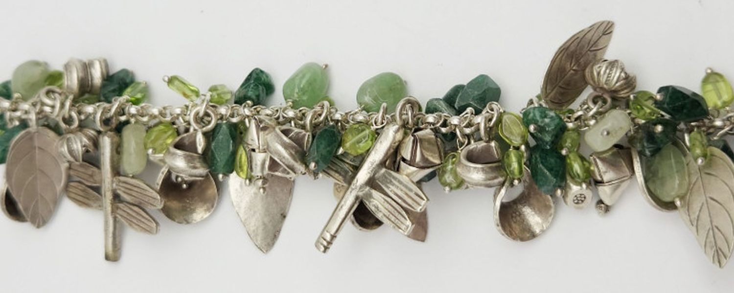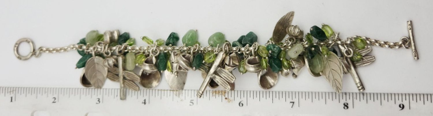 BRACELET WITH GREEN ADVENTURINE STONE ACCENTS-BEAUTIFUL & HEAVY PIECE! TOTAL 48 DWT