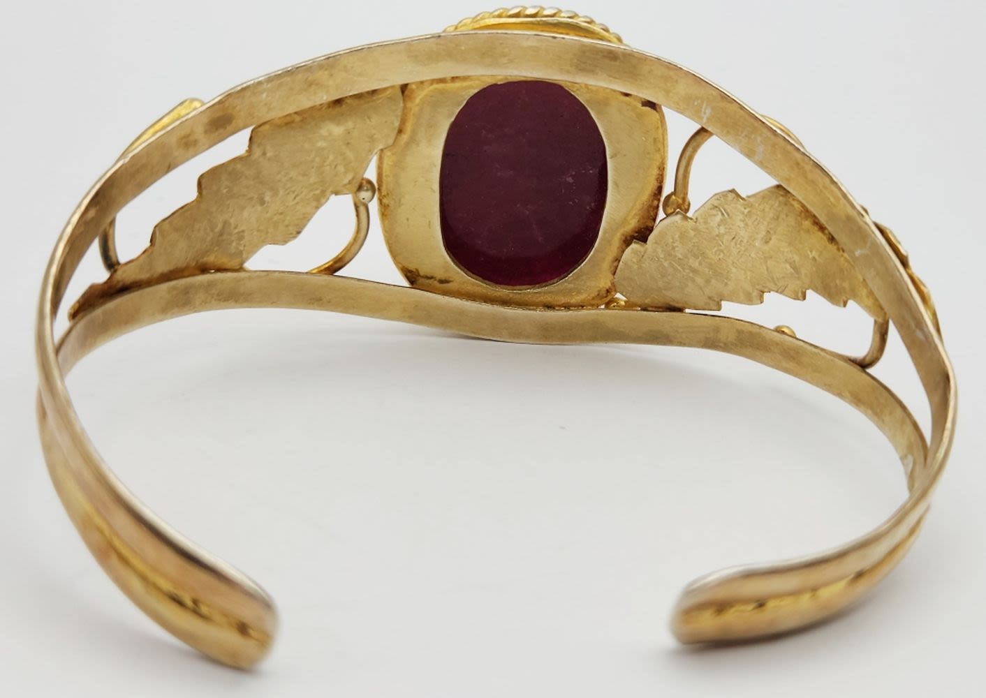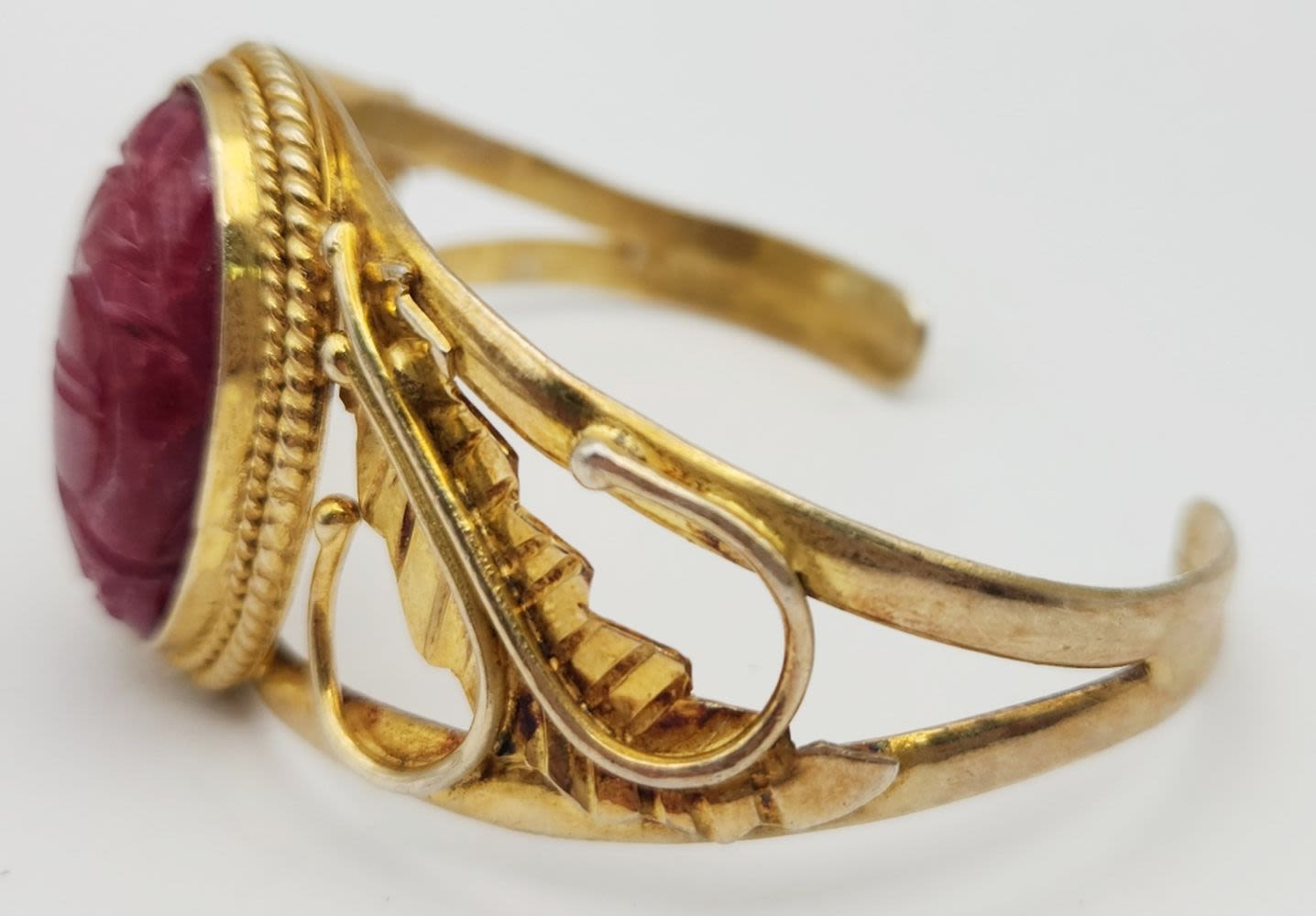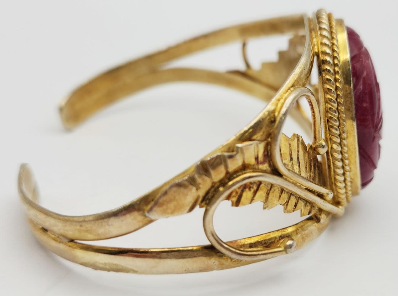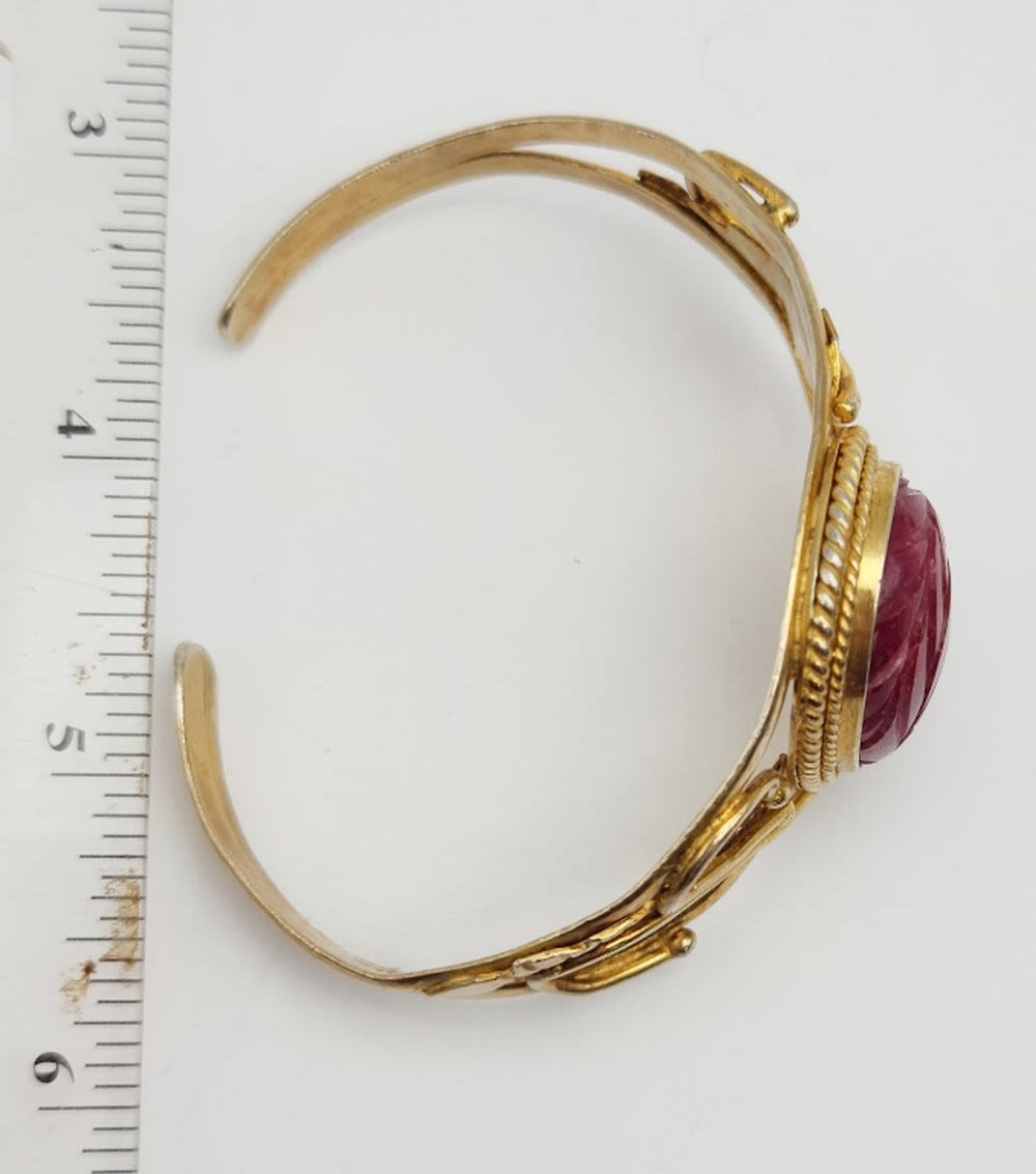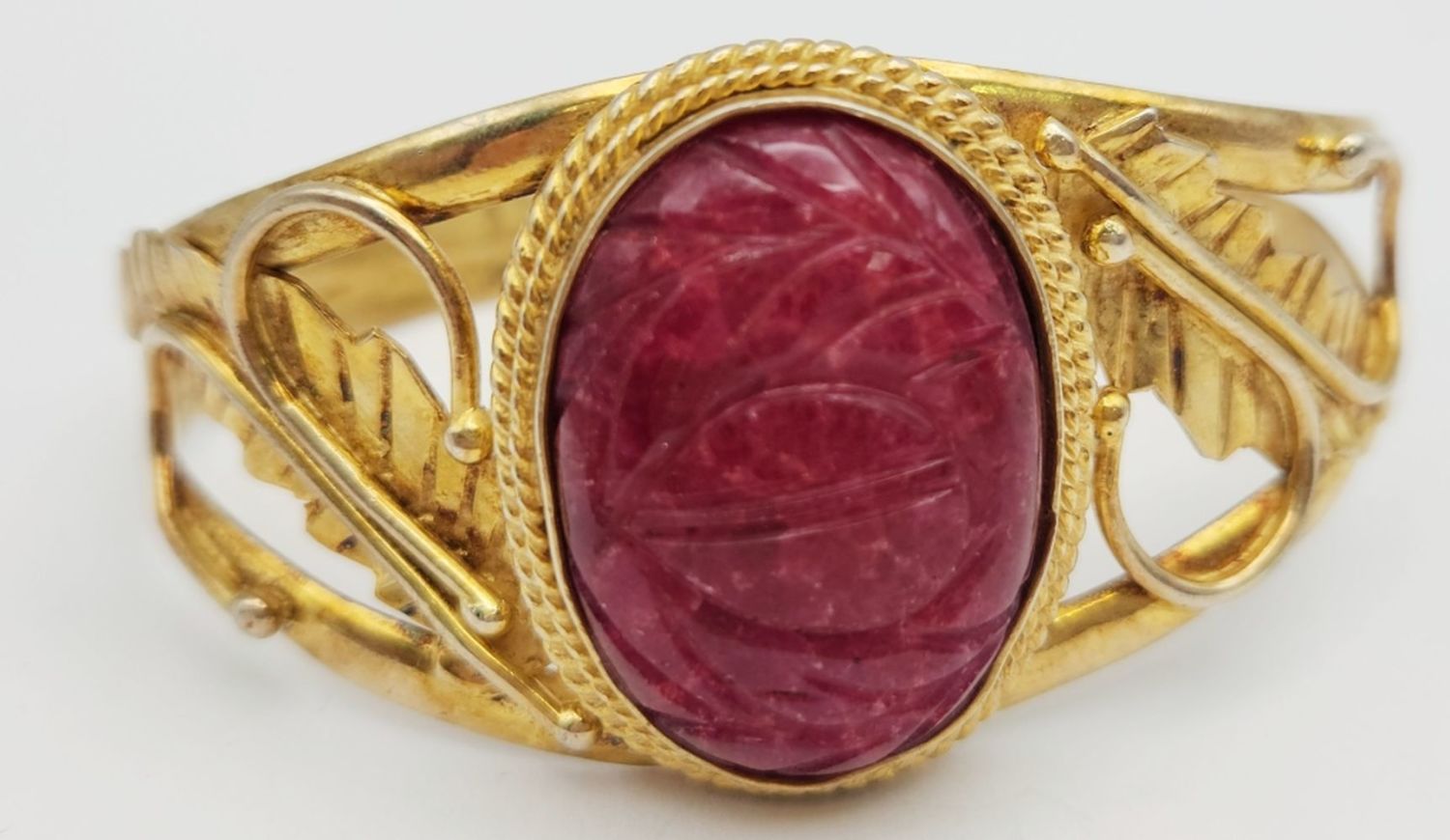 WITH CARVED PINK AGATE CENTER STONE-LEAF DESIGN-TOTAL 8.5 INCH WITH GAP-TOTAL 25 DWT