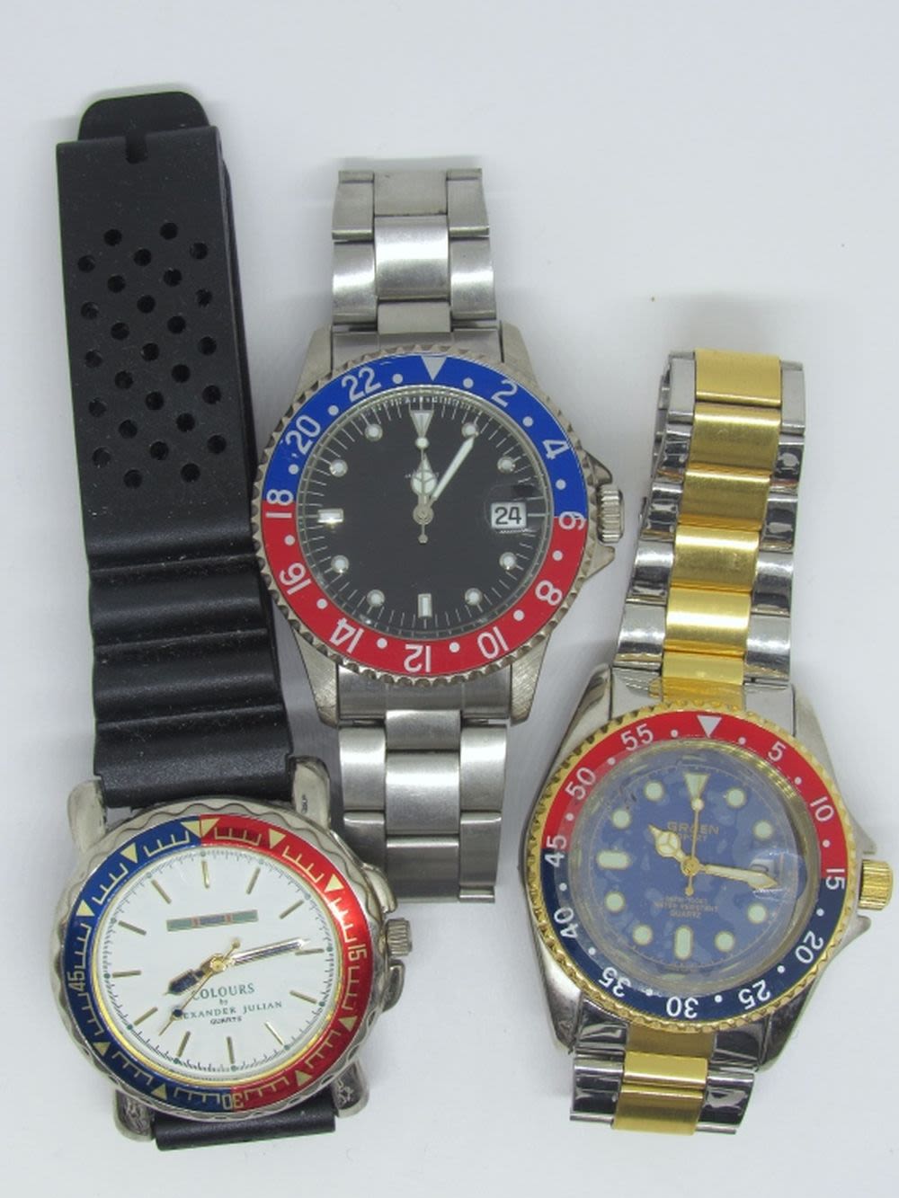 COLOURS by ALEXANDER JULIAN LIKE NEW – plus JAPAN MOVT – DATE WATCHES with HOUR DIAL – UNTESTED