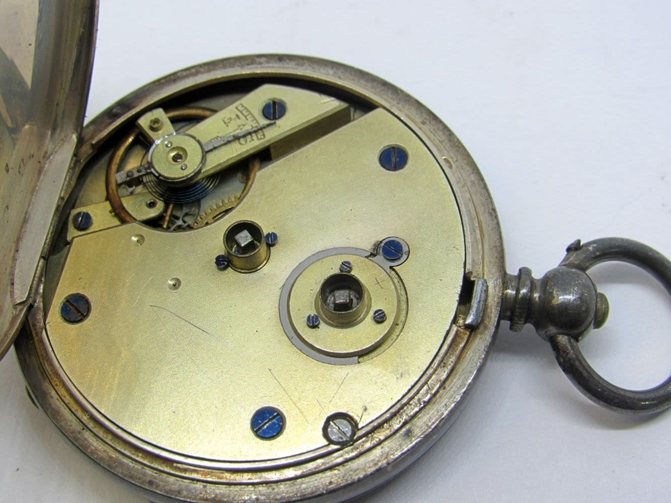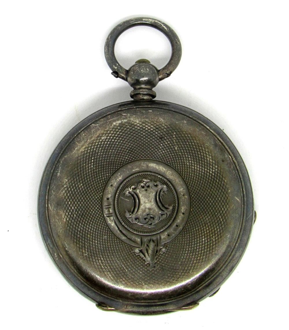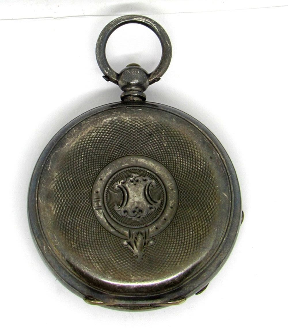 .935 Silver Cased Key Wind Pocket Watch -RUNNING but NEEDS WORK (wound with office key) – MISSING CRYSTAL & KEY