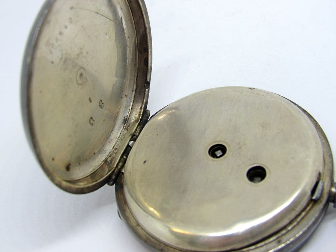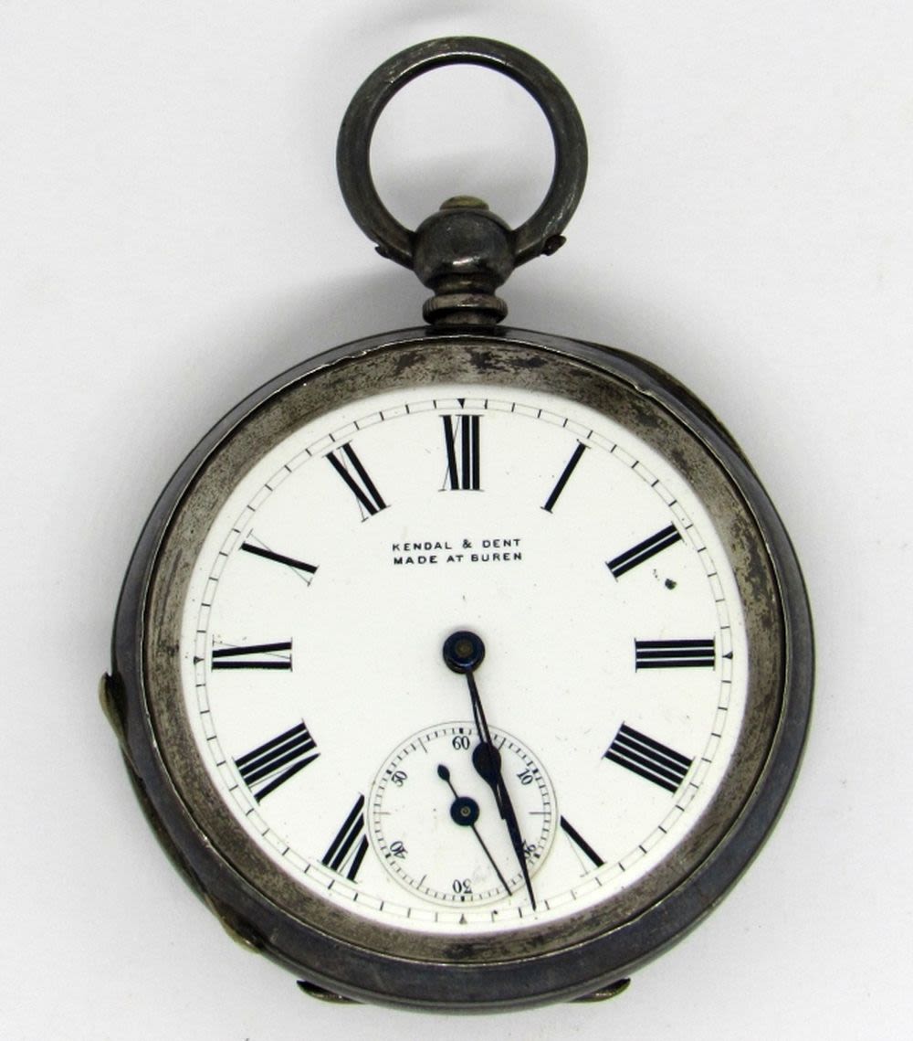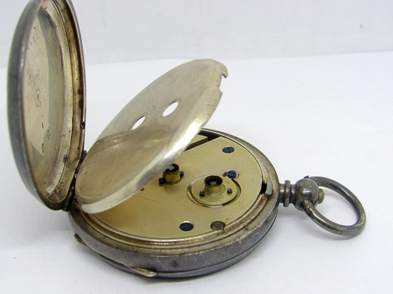 .935 Silver Cased Key Wind Pocket Watch -RUNNING but NEEDS WORK (wound with office key) – MISSING CRYSTAL & KEY