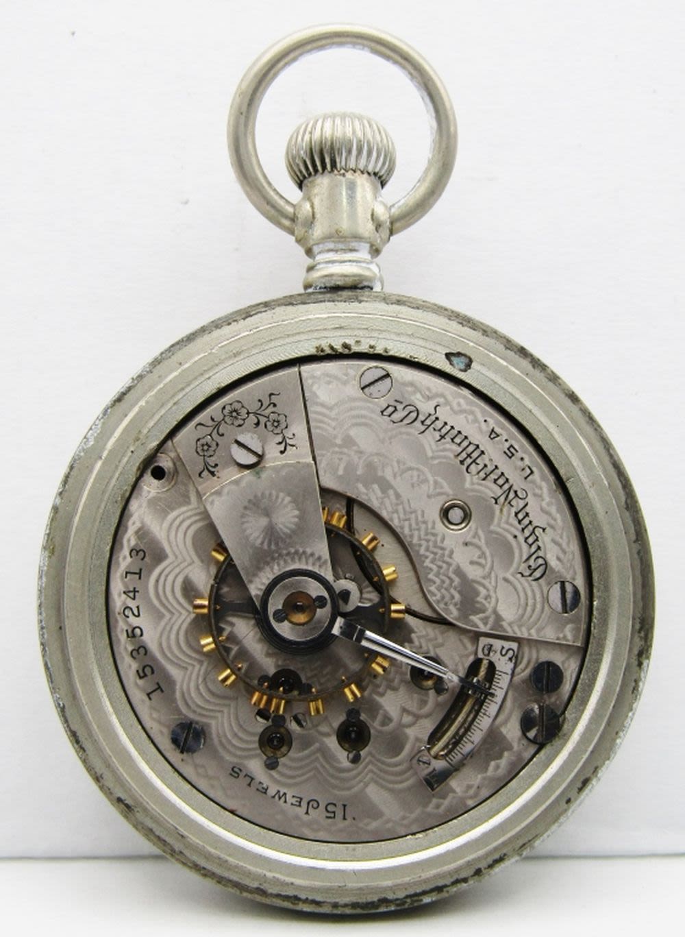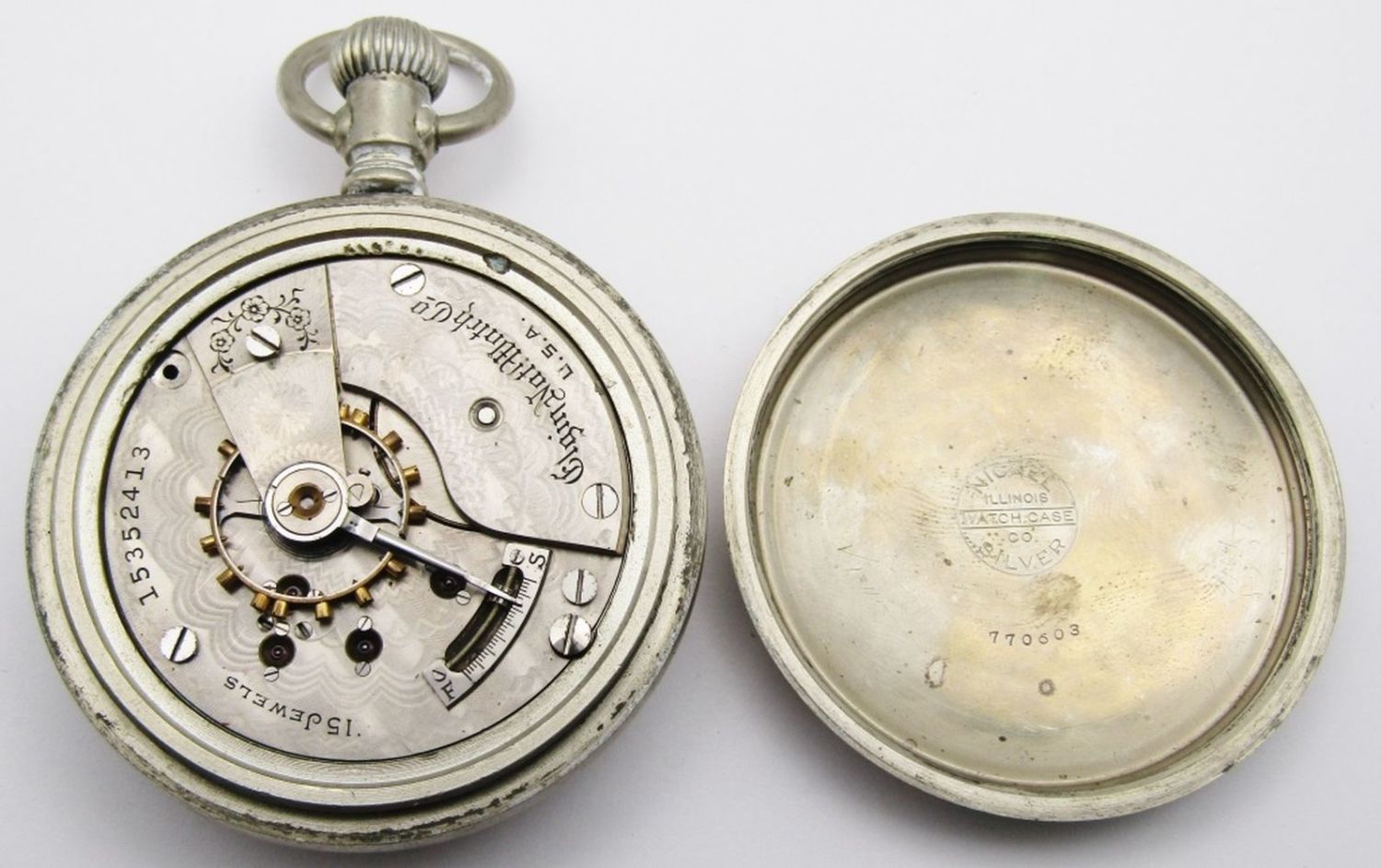 SERIAL # 15352413, 15j, 18 SIZE, GRADE 317, OPENFACE – NOT RUNNING – NEEDS REPAIR – NICKEL SILVER CASE