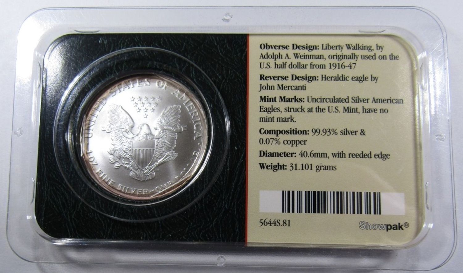 AMERICAN SILVER EAGLE 1ozt .999 PURE SILVER