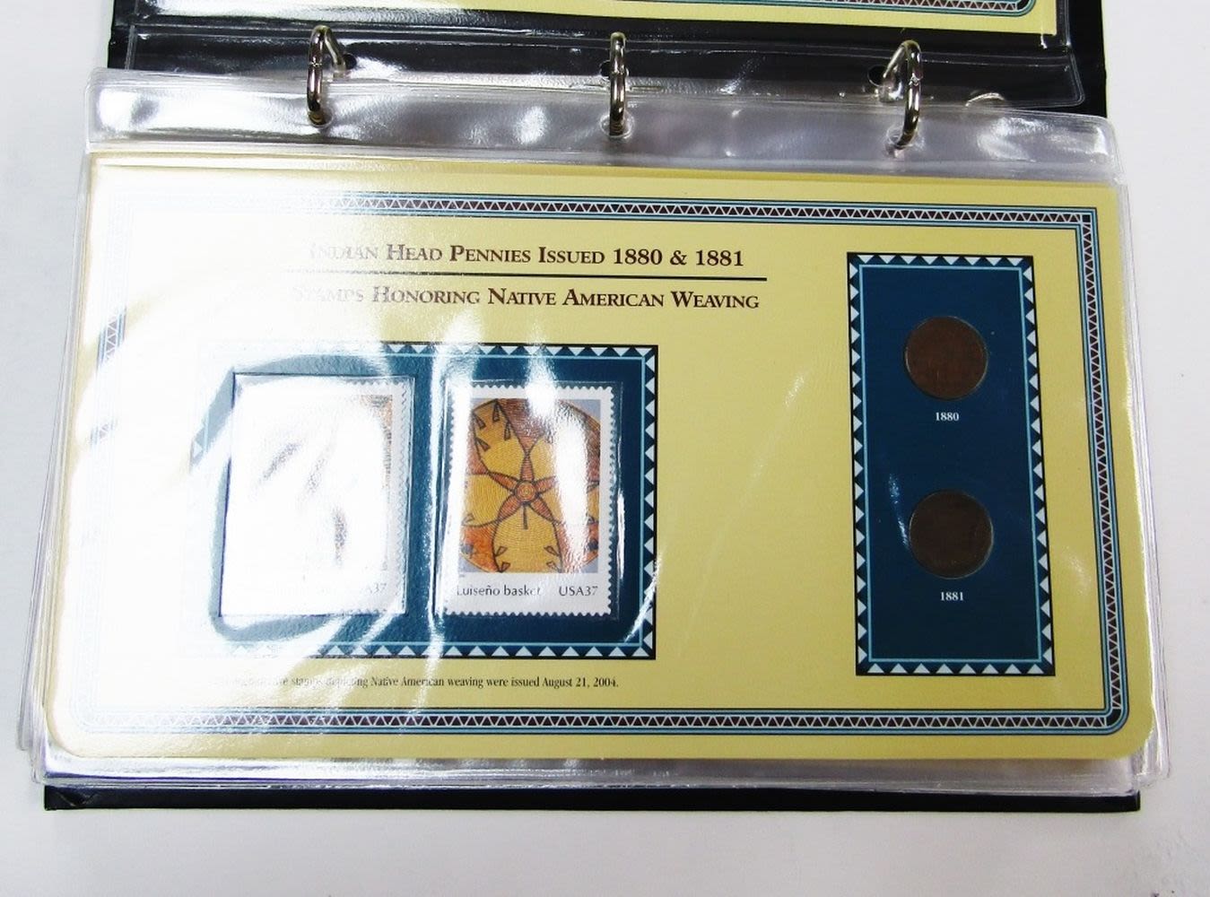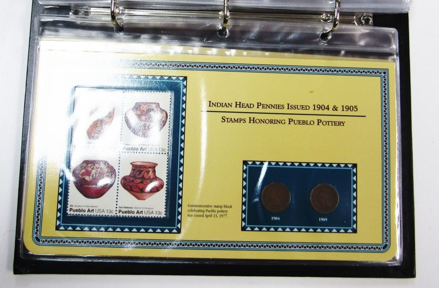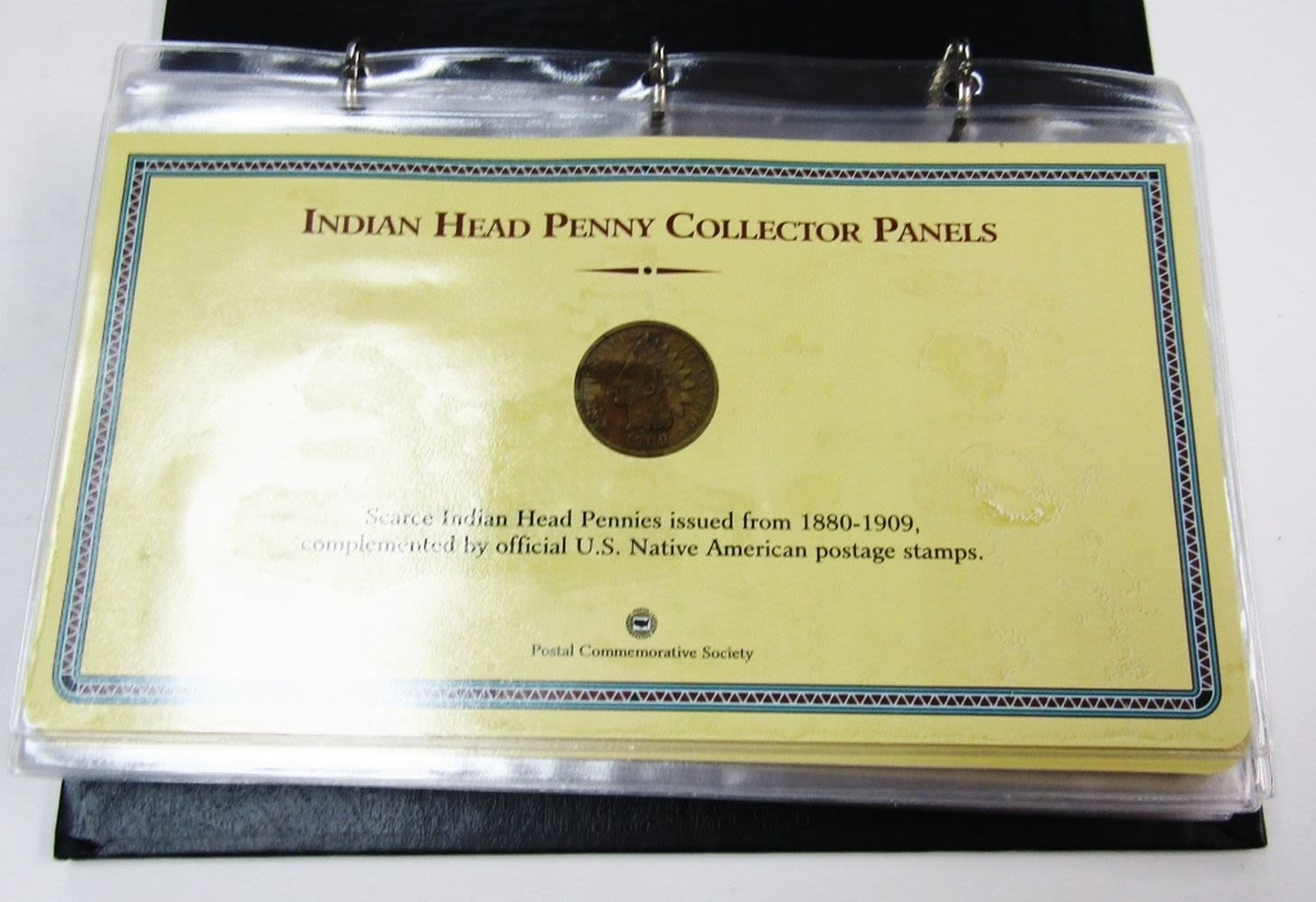 PENNY COLLECTOR PANELS – 1880 thru 1909 INDIAN HEAD CENTS with COLLECTOR STAMPS in POSTAL COMMEM ALBUM