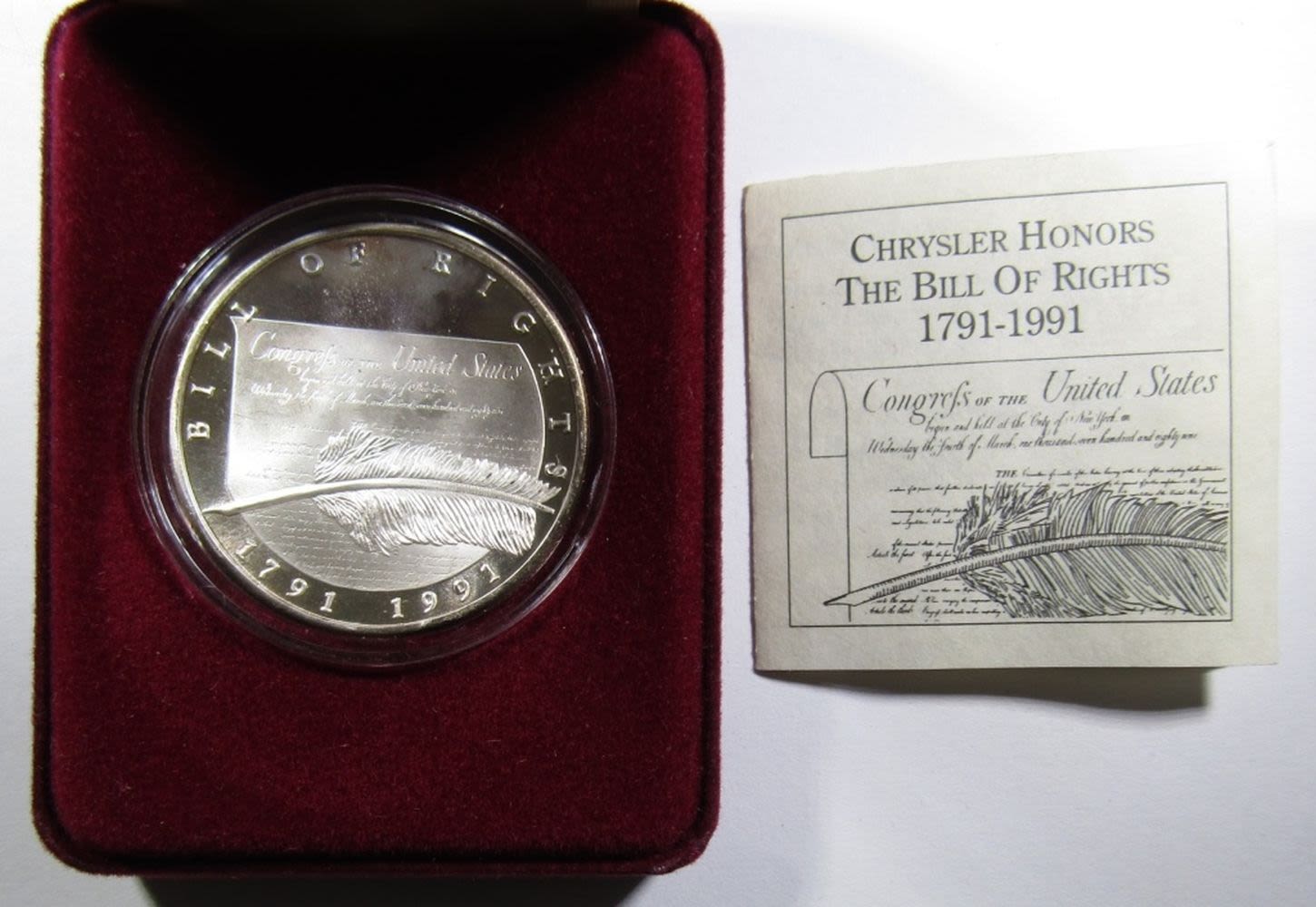 CHRYSLER CORPORATION COMMEMORATIVE MEDALLION, LIBERTY MINT, WITH VELVET CASE & COA.