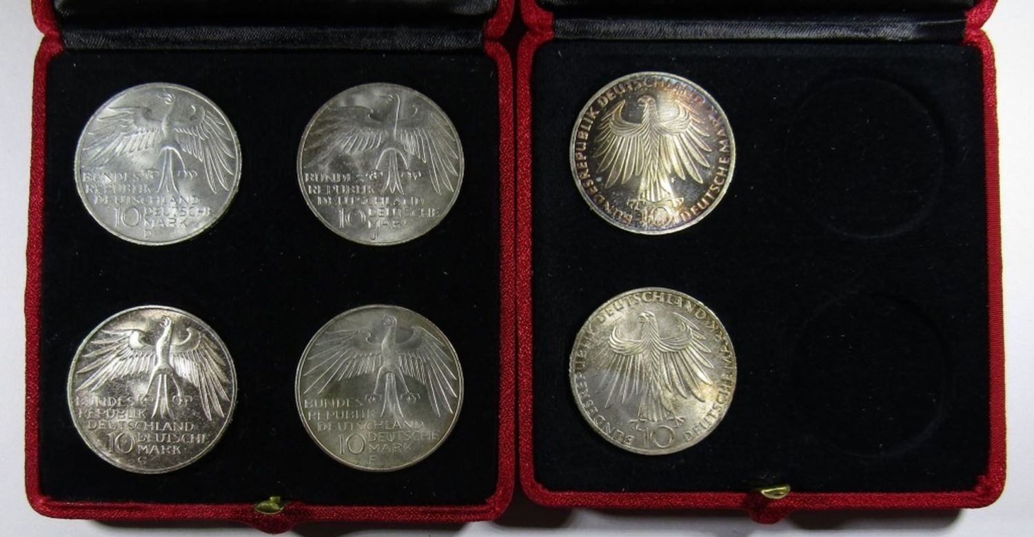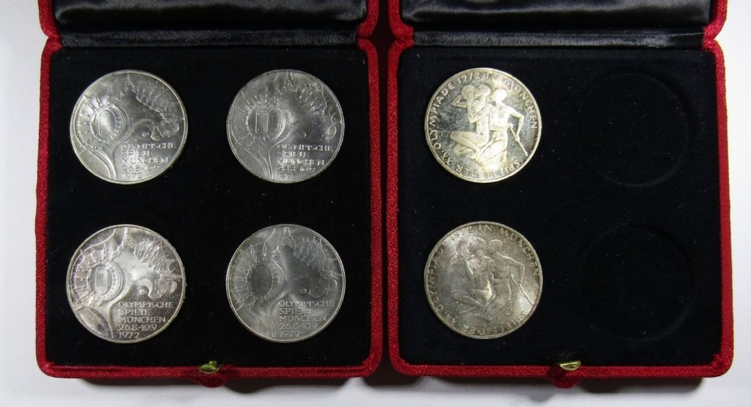 1972-D,F TWO ATHLETES KNEELING DESIGN & 1972-D,F,G,J (FULL SET) STADIUM DESIGN, WITH RED CASES