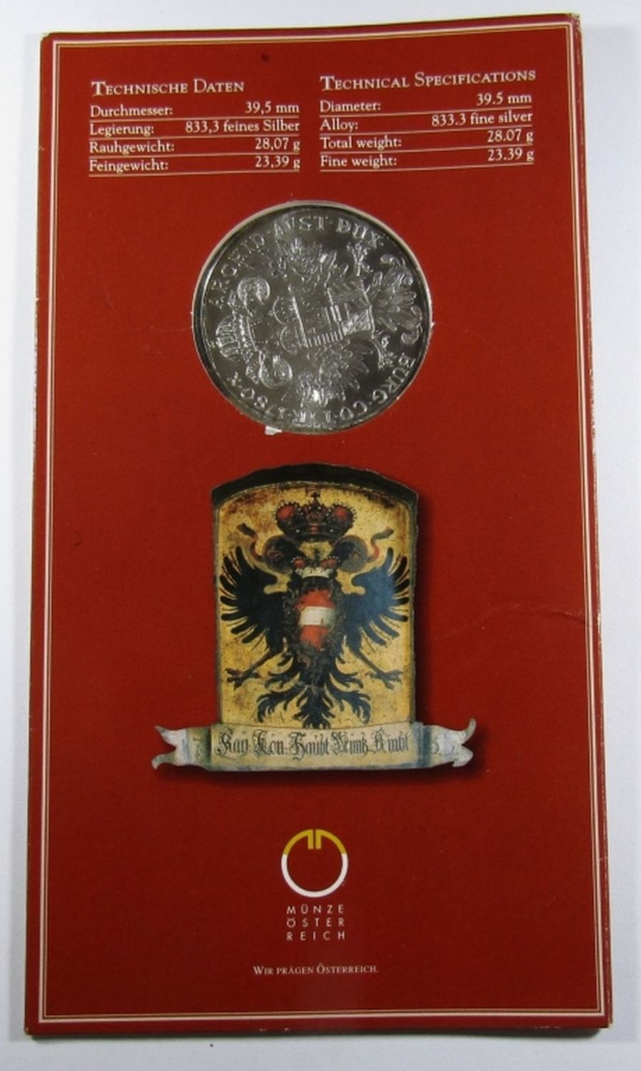 OFFICIAL RESTRIKE SEALED IN AUSTRIAN MINT INFORMATIONAL PACKAGAING