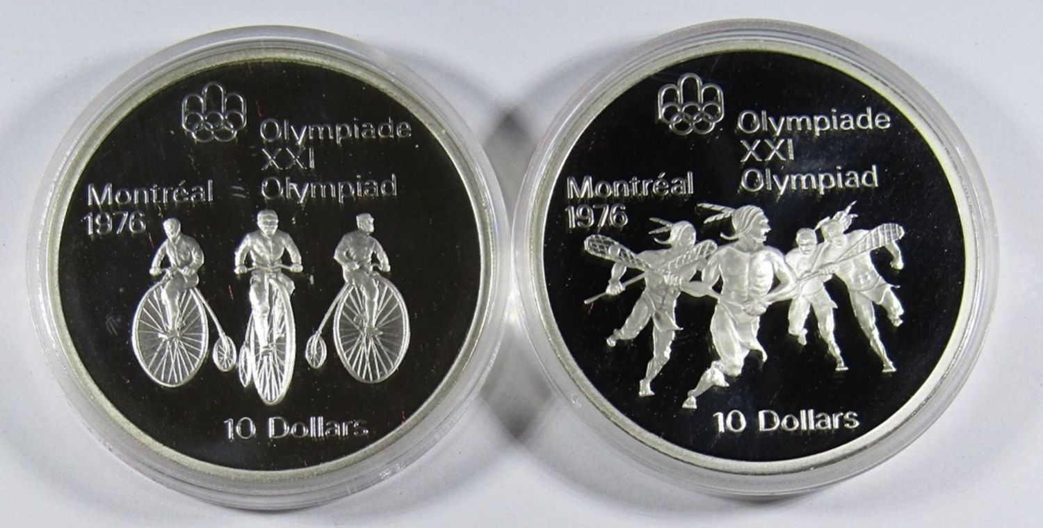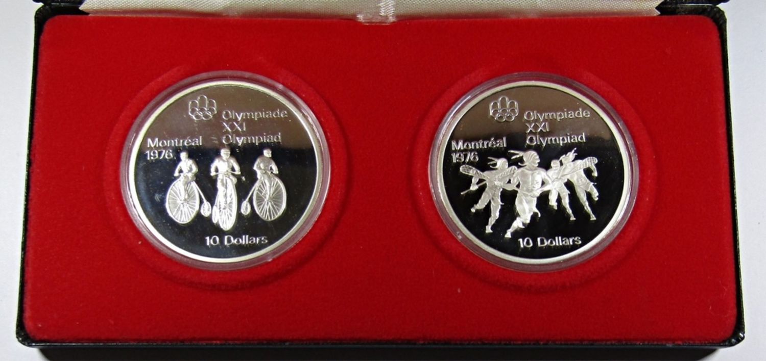 STERLING SILVER, MONTREAL OLYMPICS 1976 OLYMPICS XXI- CYCLING & LACROSSE, IN CASE.