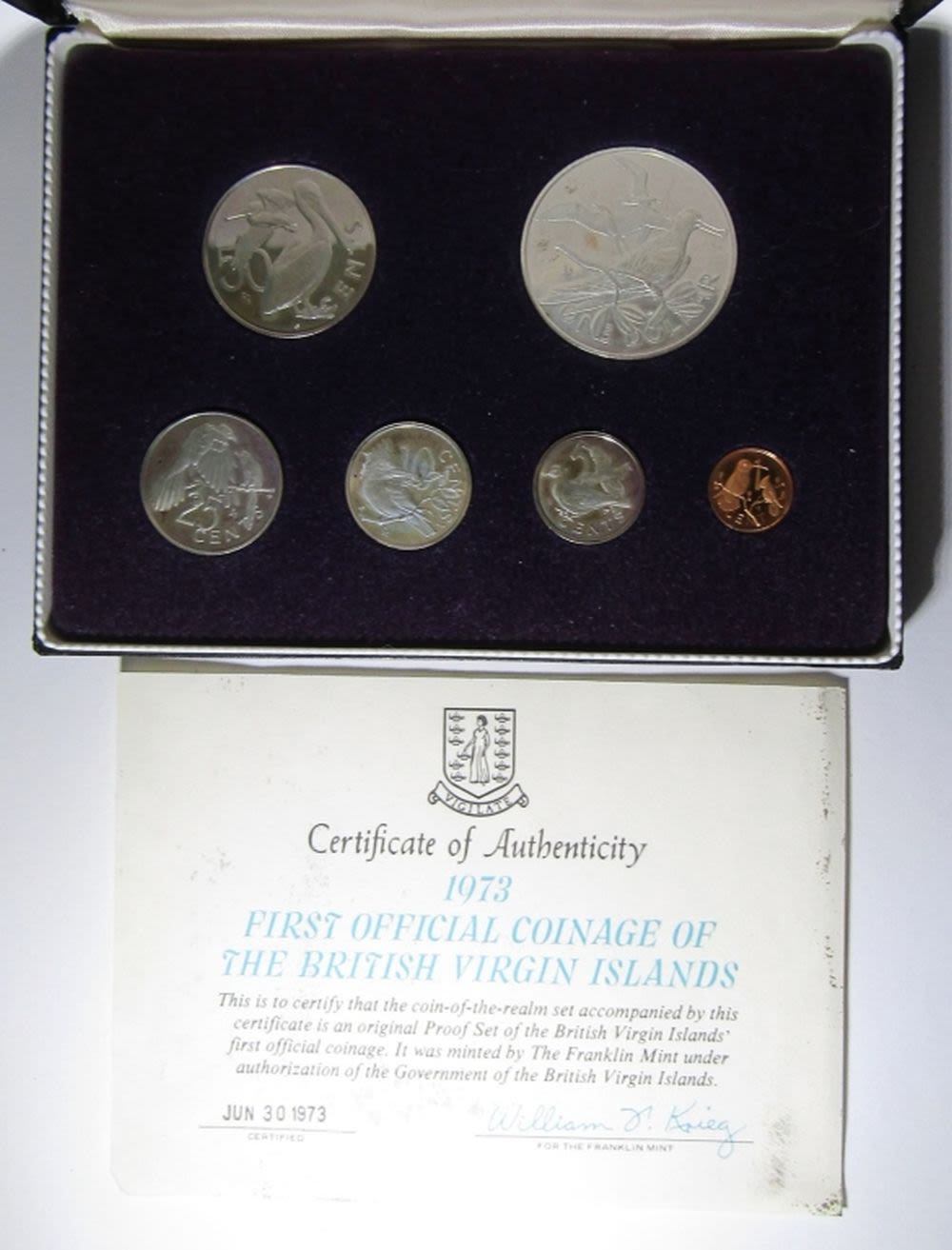 FIRST OFFICIAL COINAGE OF THE BRITHISH VIRGIN ISLANDS, THE FRANKLIN MINT. WITH CASE & COA.