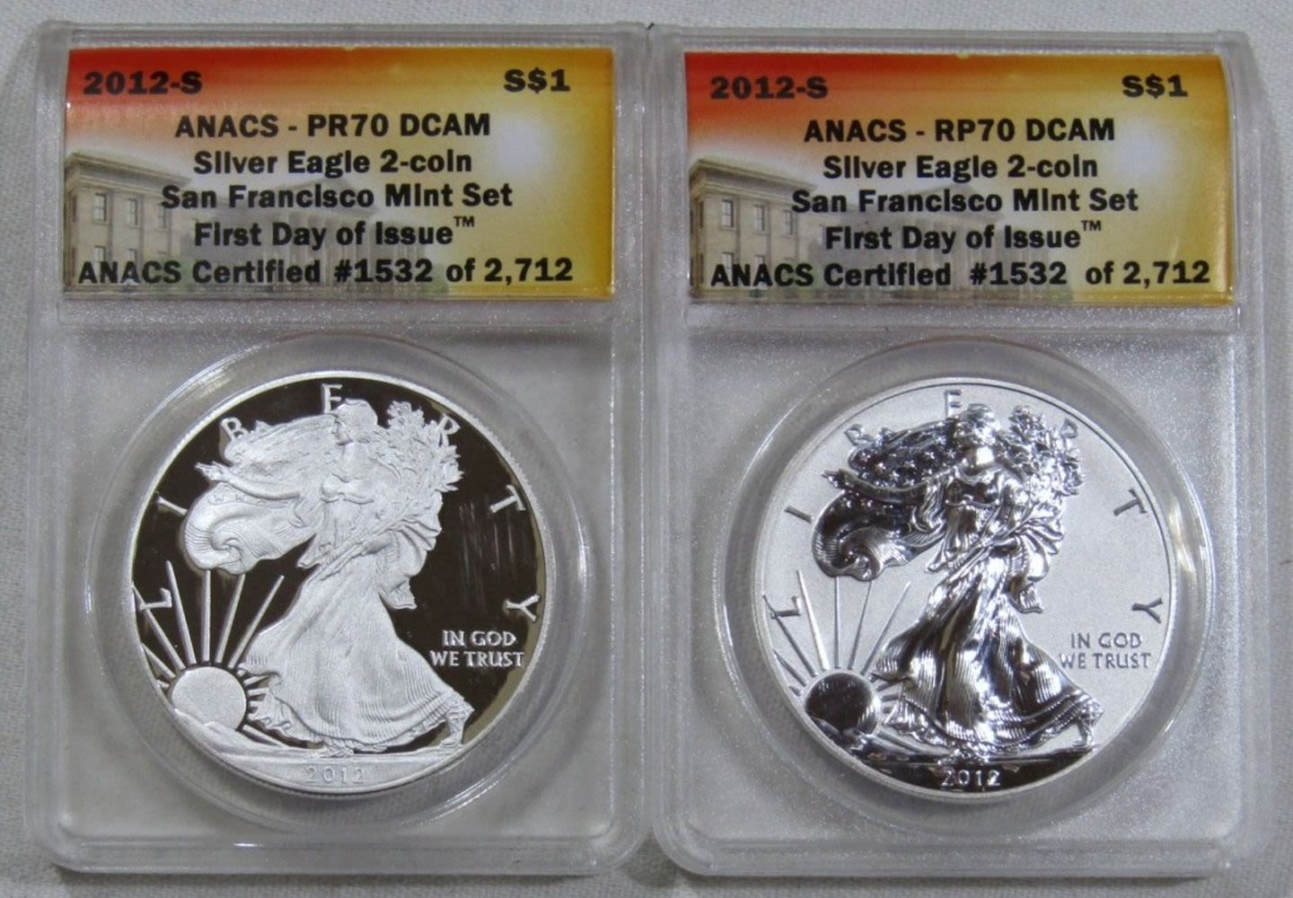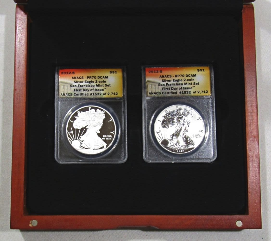 SAN FRANCISCO MINT SET PR-70 DCAM & RP-70 DCAM BOTH FIRST DAY OF ISSUE. IN DISPLAY CASE.