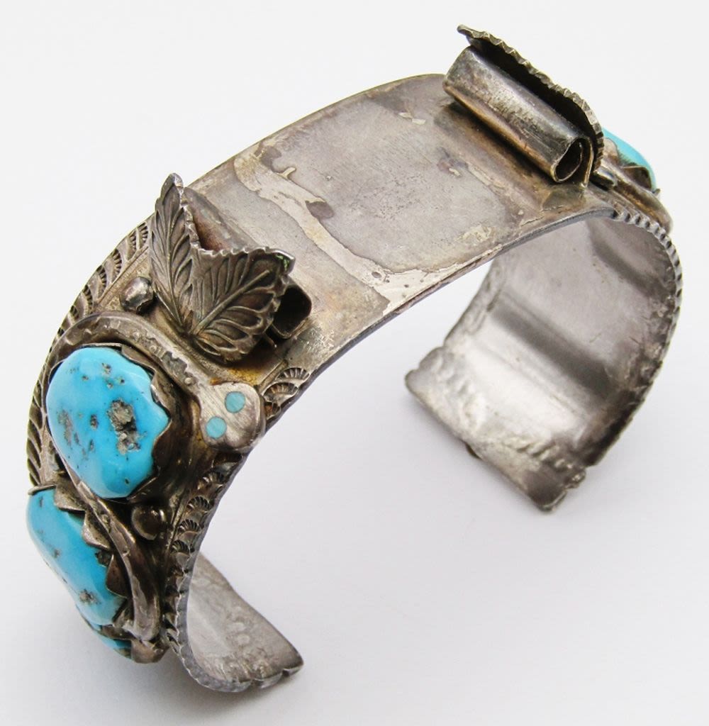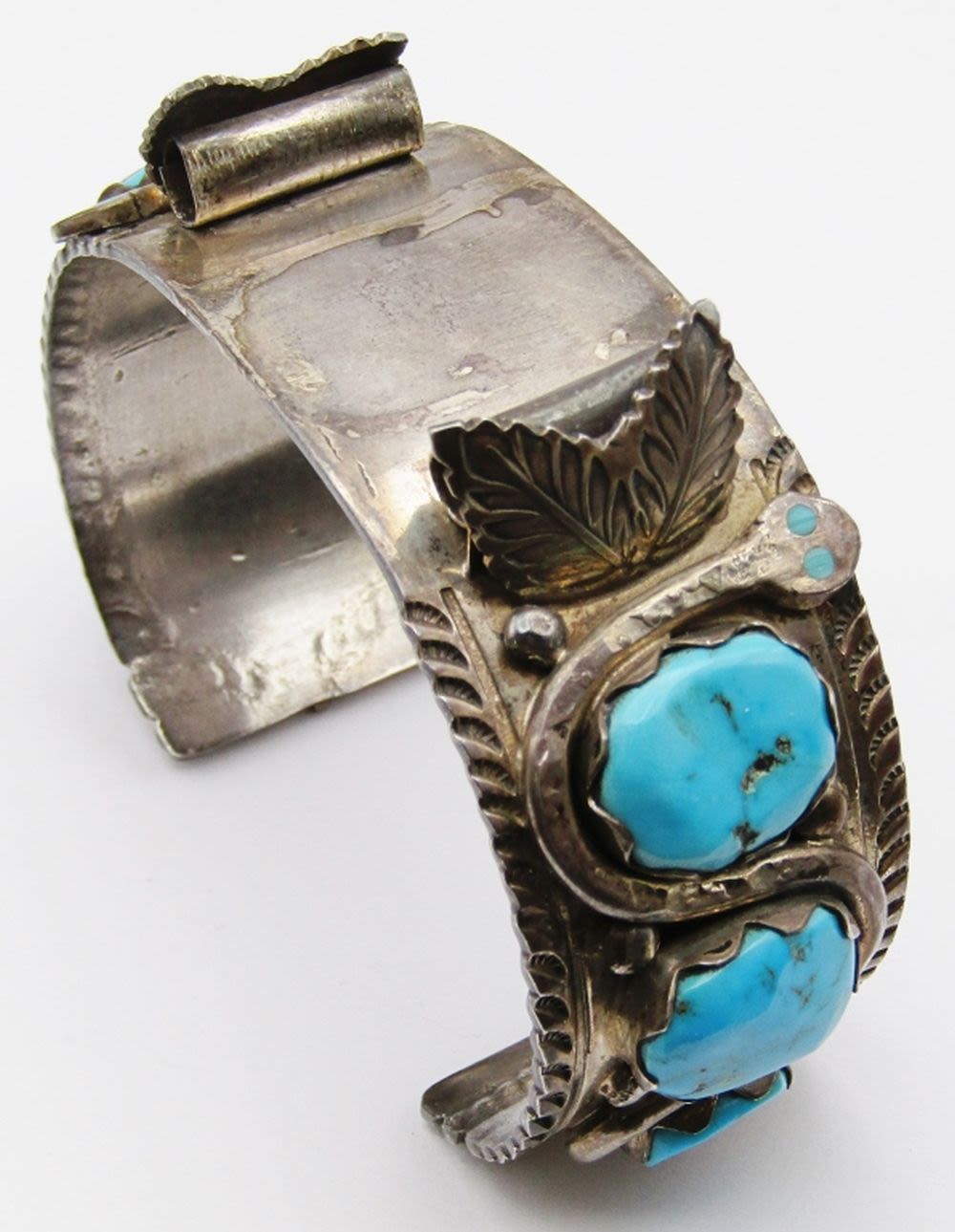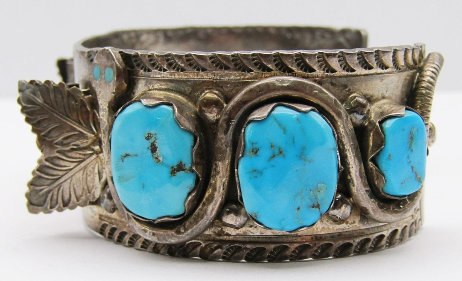 WITH LARGE TURQUOISE STONE ACCENTS-MEASURES 9 INCHES WITH GAP-TOTAL 54 DWT