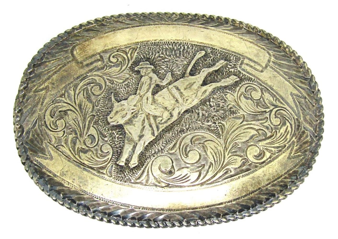 CALIF 22K OVER 925 BULL RIDER BELT BUCKLE-TOTAL 44 DWT