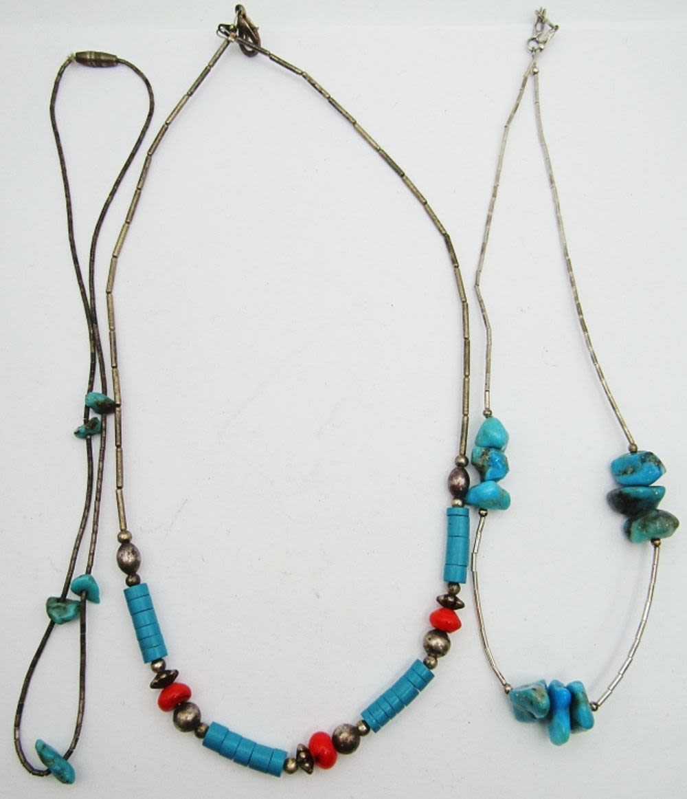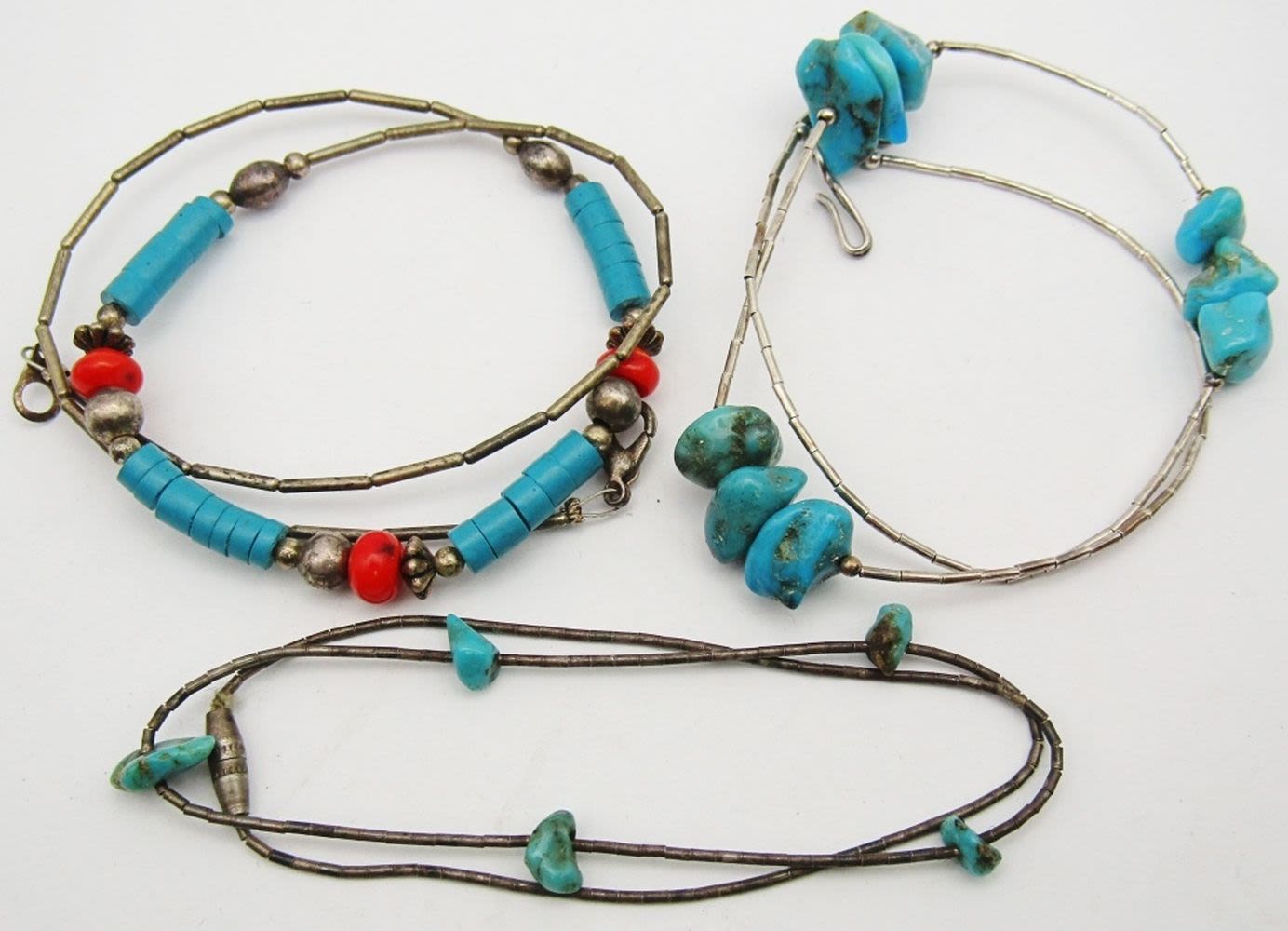 DIFF LENGTHS/DESIGNS-TURQUOISE AND RED CORAL ACCENTS-TOTAL 14 DWT