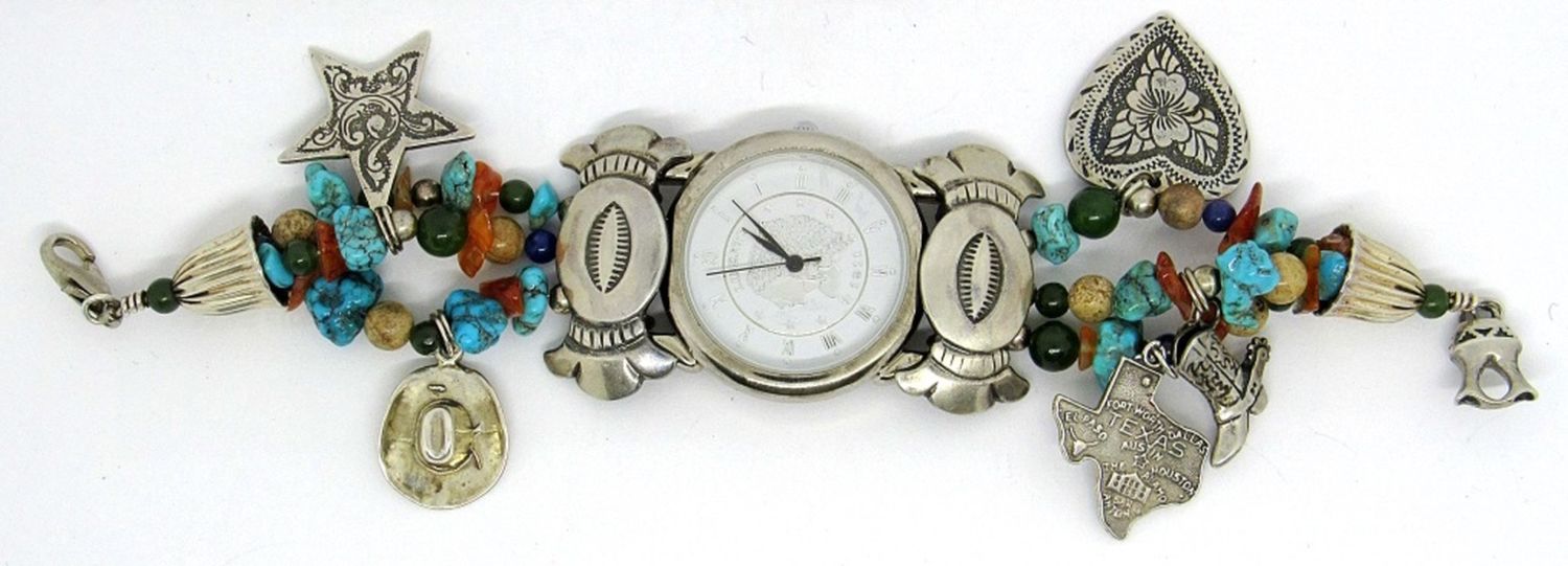 WATCH with STERLING CHARMS & SOUTHWEST BEADS – NEEDS BATTERY REPLACED (43 dwt)