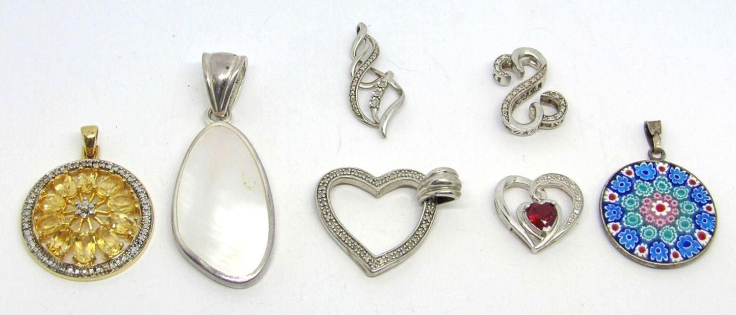 MULTI FLORAL DISC PENDANT plus (6) OTHER PRETTY STERLING PENDANTS (20 dwt)