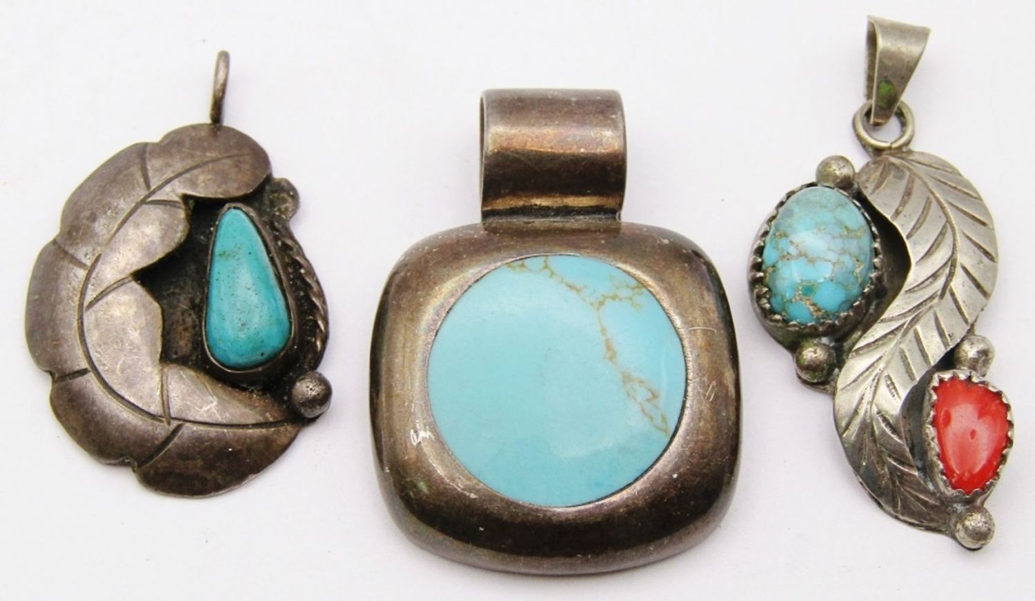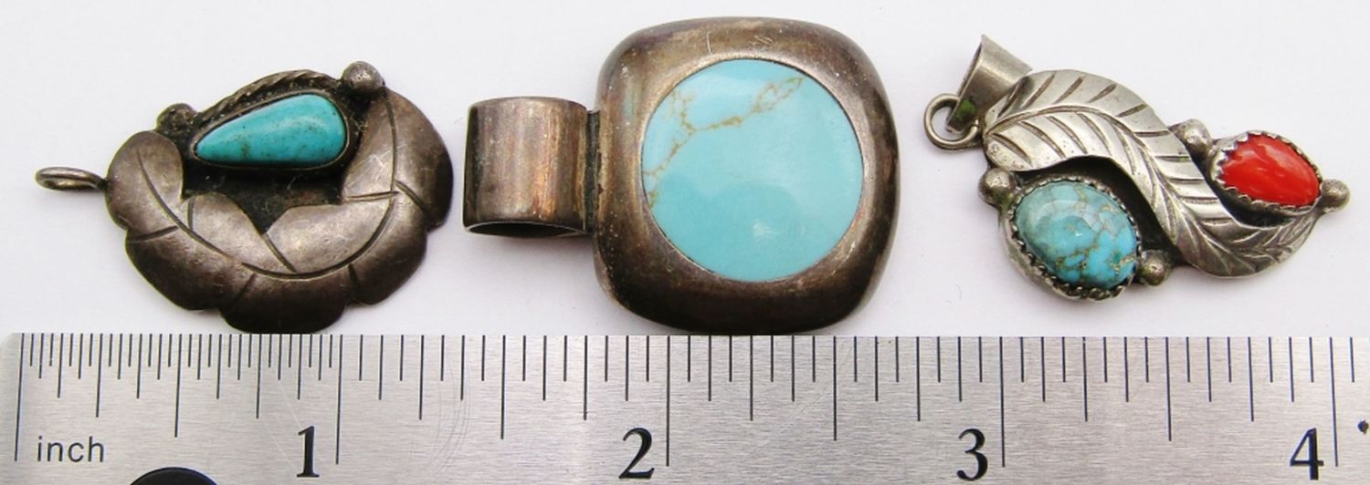 TURQUOISE AND RED CORAL STONE ACCENTS (1)MARKED MEXICO-TOTAL 14 DWT