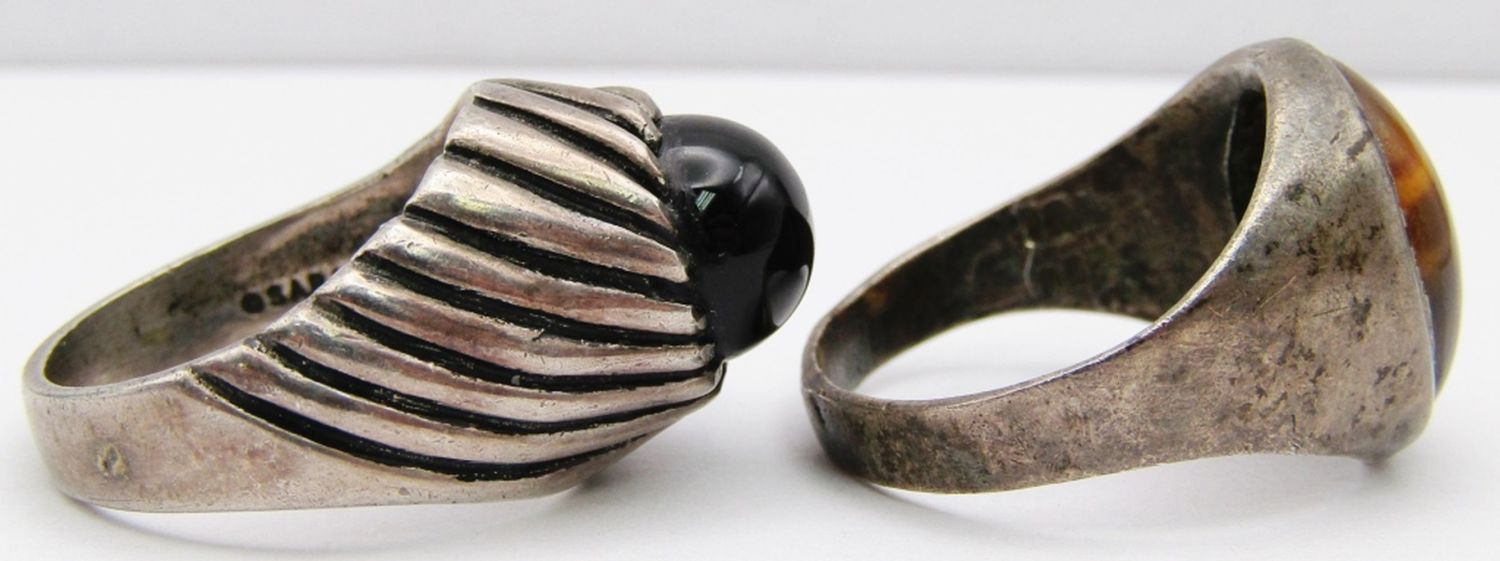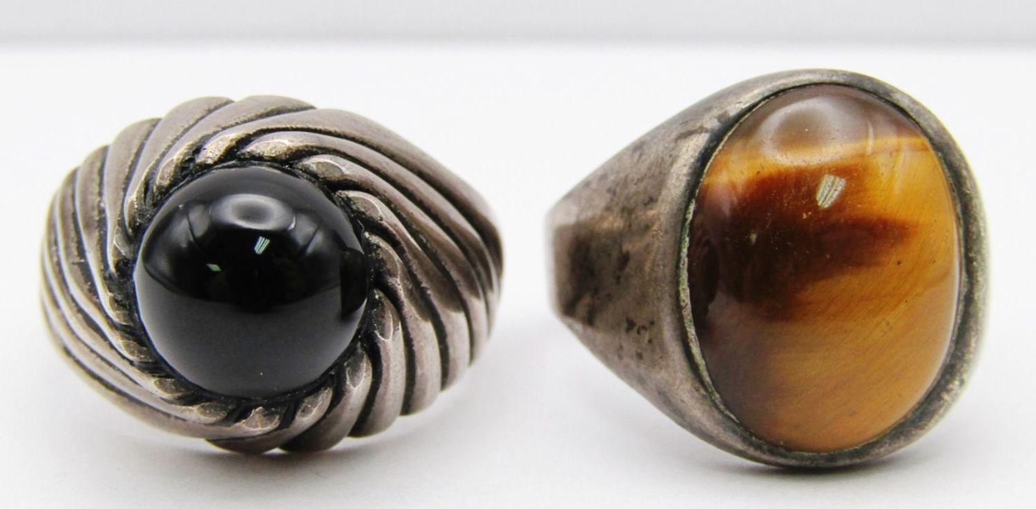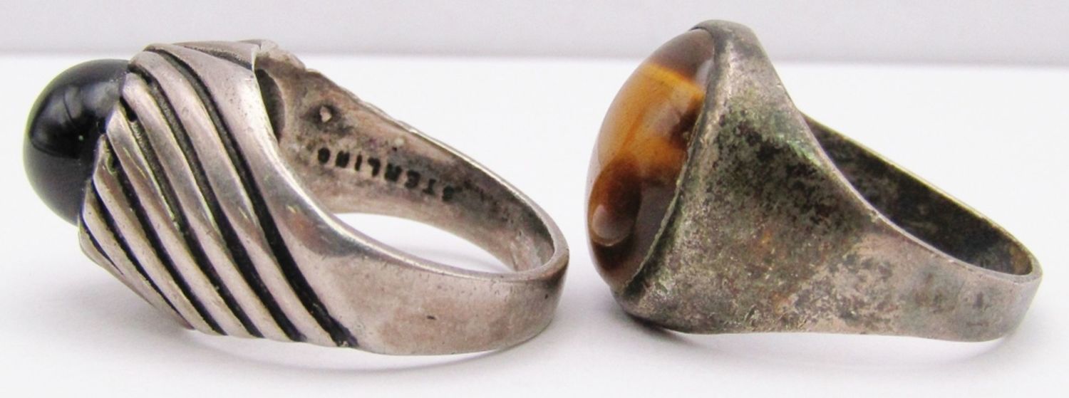 WITH TIGER EYE CENTER & (1)SARAH COVENTRY WITH ONYX CENTER STONE-RING SIZES 9 & 10-TOTAL 12 DWT