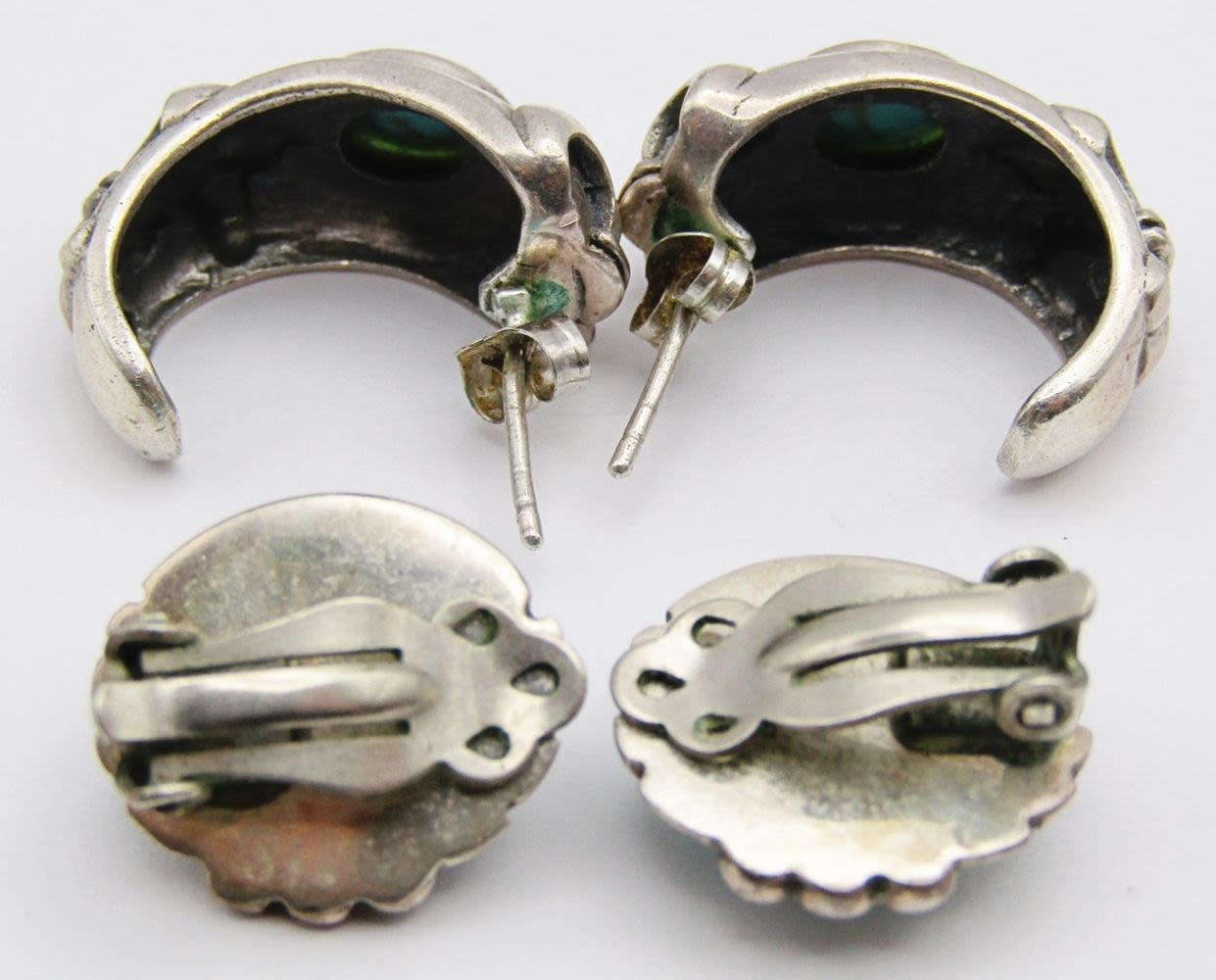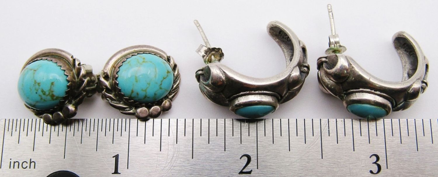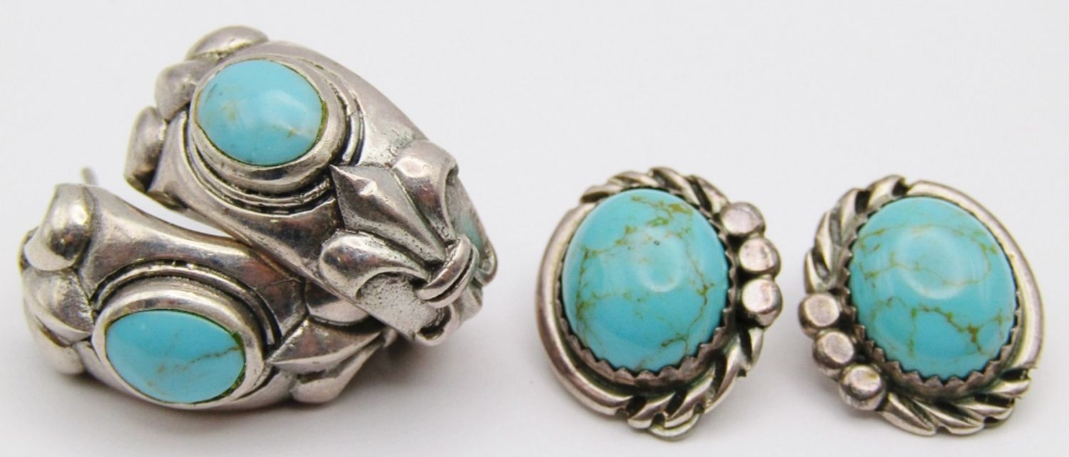 EARRINGS WITH TURQUOISE STONES (1)CLIP ON (1)HOOP-TOTAL 9 DWT