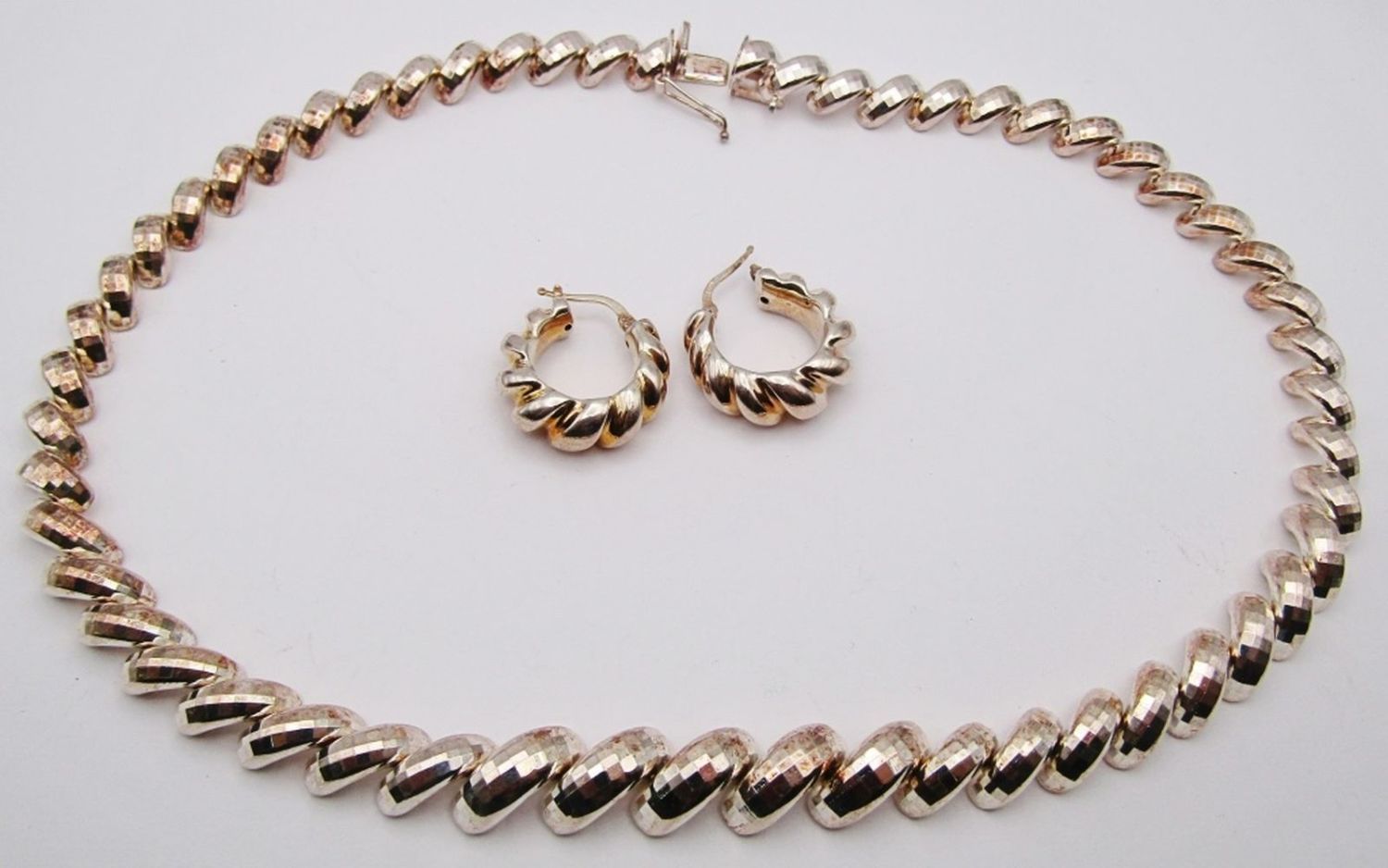 PAIR OF PIERCED HOOPED EARRINGS-NECKLACE MEASURES 18 INCHES-TOTAL 34 DWT