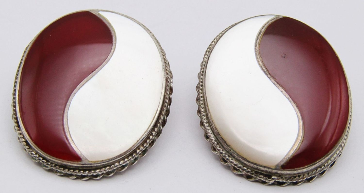 WITH YING YANG MOTHER OF PEARL AND MAROON STONE INLAY DESIGN-TOTAL 13 DWT