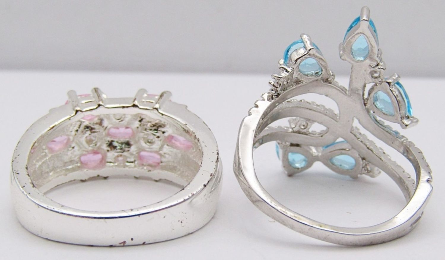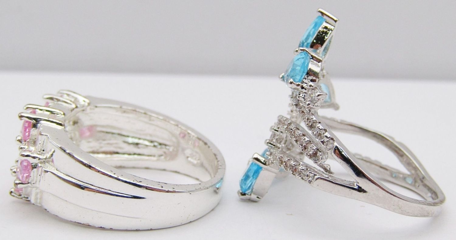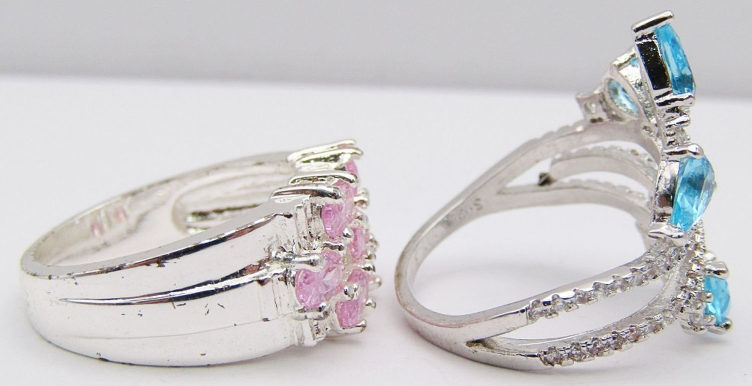BLUE AND PINK STONE ACCENTS-BOTH RING SIZE 8.5-TOTAL 7 DWT