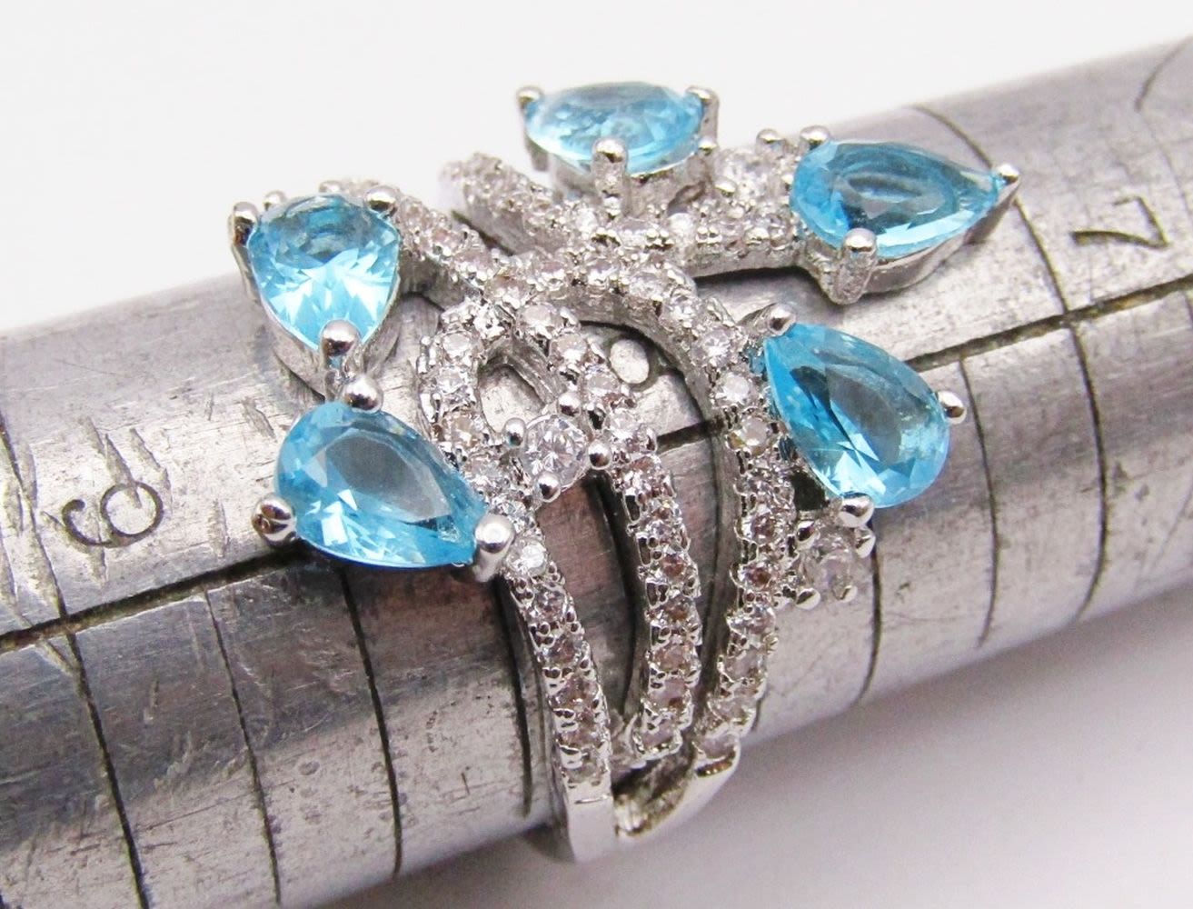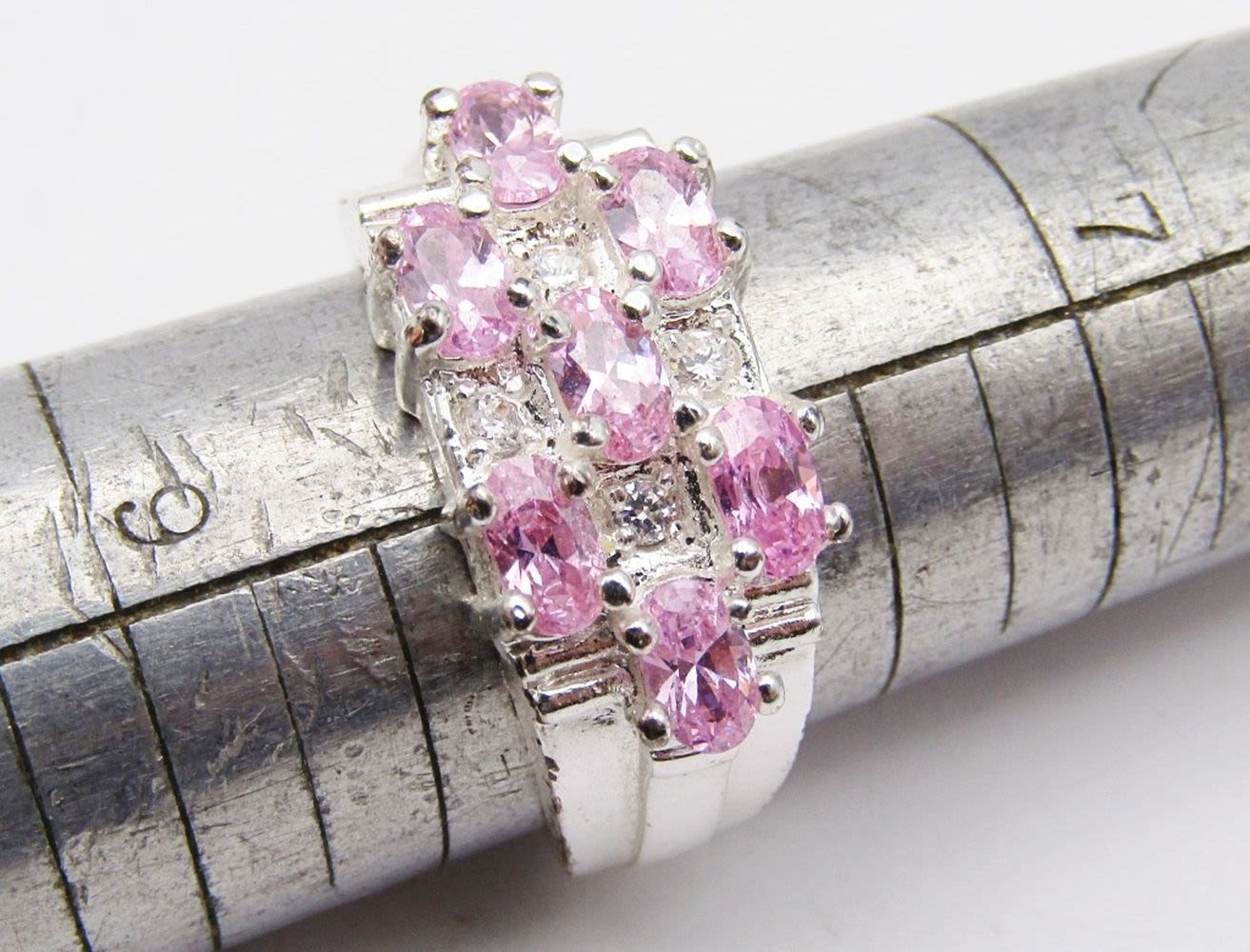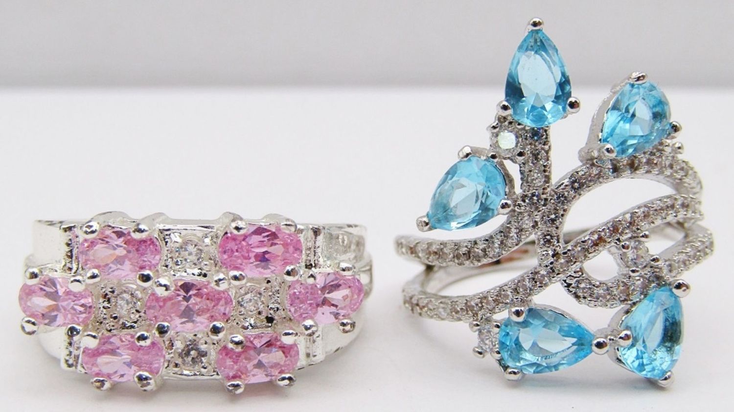 BLUE AND PINK STONE ACCENTS-BOTH RING SIZE 8.5-TOTAL 7 DWT