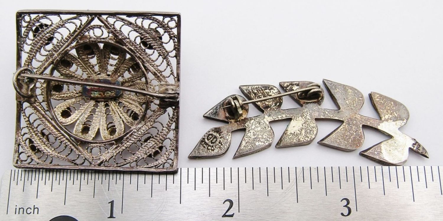 DESIGN WITH ABILONE INLAY & (1)FILIGREE SQUARE BROOCH-TOTAL 11 DWT