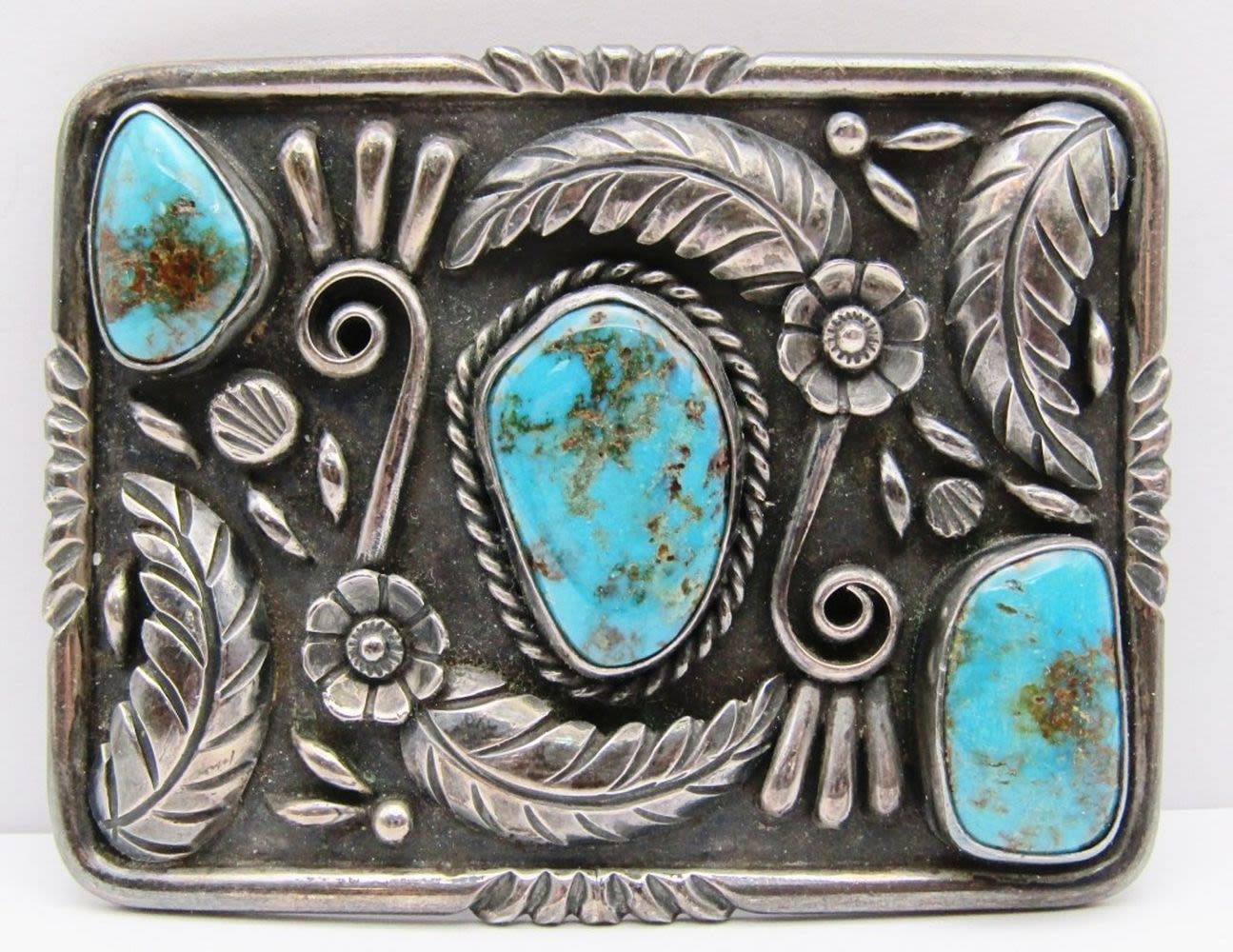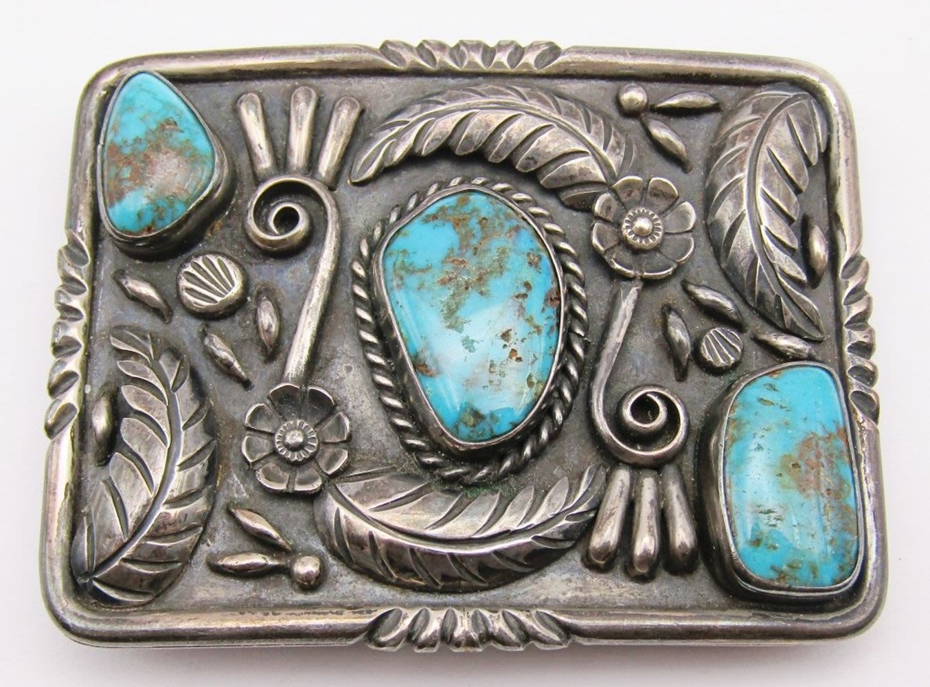 BUCKLE WITH TURQUOISE STONES-LEAF DESIGN-TOTAL 50 DWT