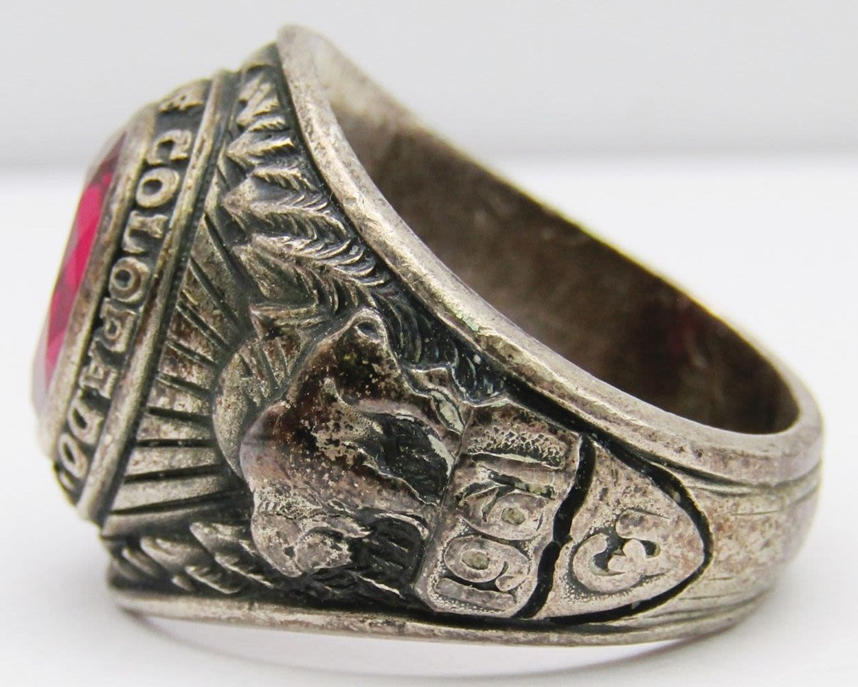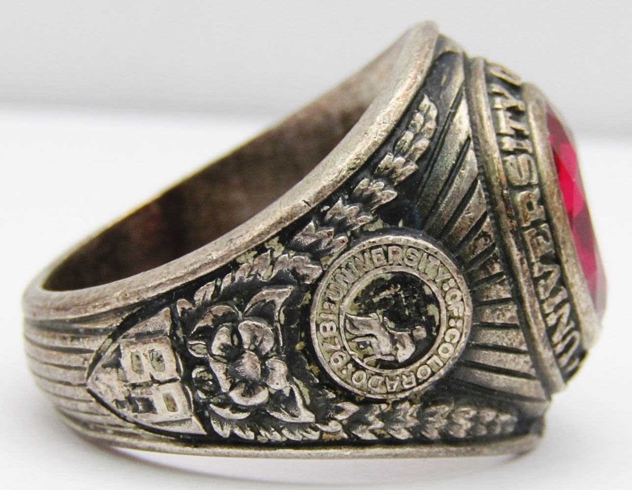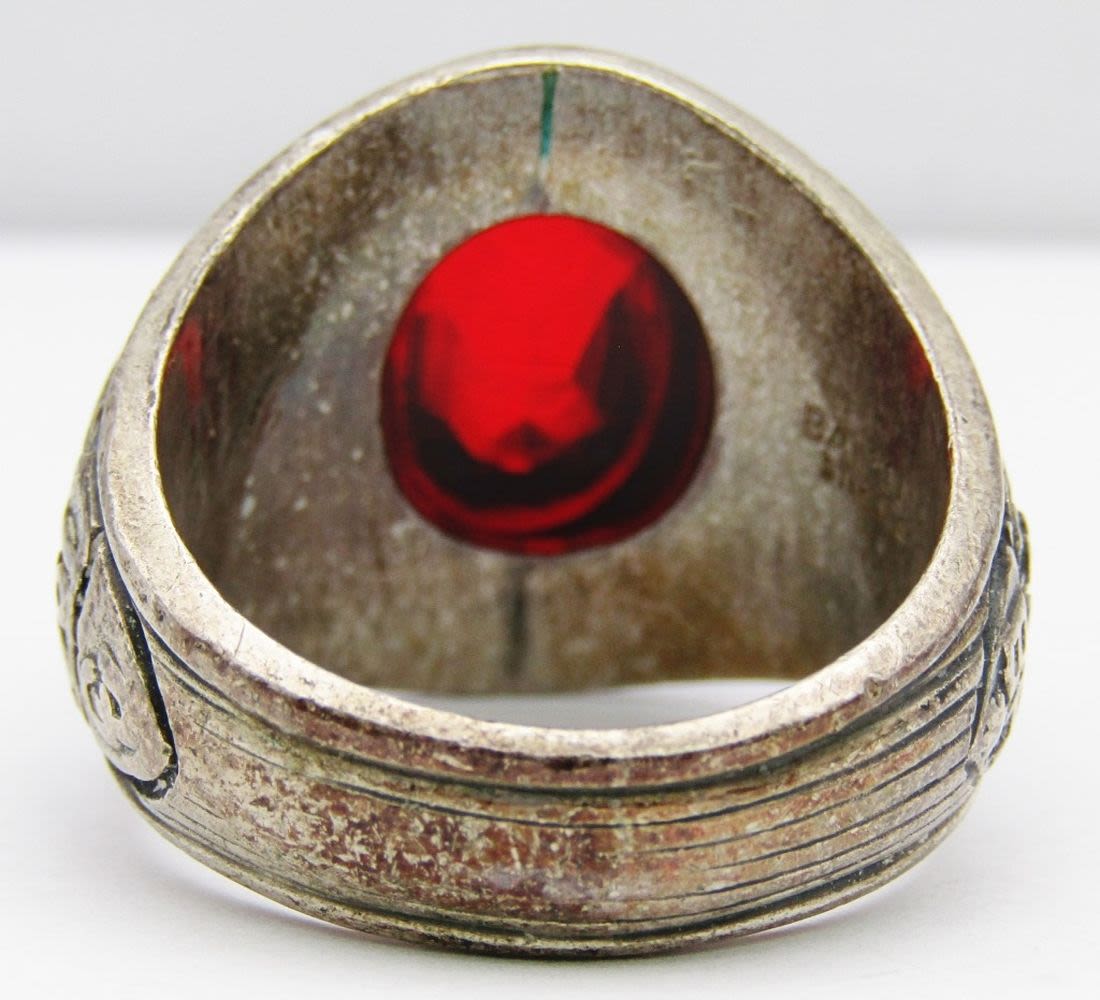 RING WITH RUBY RED CENTER STONE-RING SIZE 10-TOTAL 12 DWT