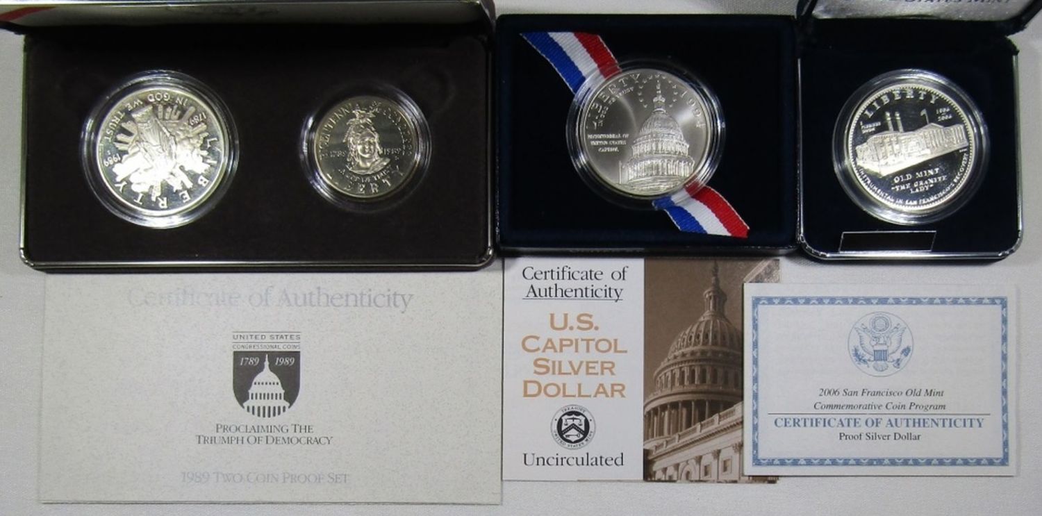 1994 U.S. CAPITAL BICENTENNIAL SILVER DOLLAR PROOF, 1989 U.S. CONGRESSIONAL COINS 2PCS PROOF AND SAN FRANCISCO OLD MINT 2006 PROOF SILVER COIN