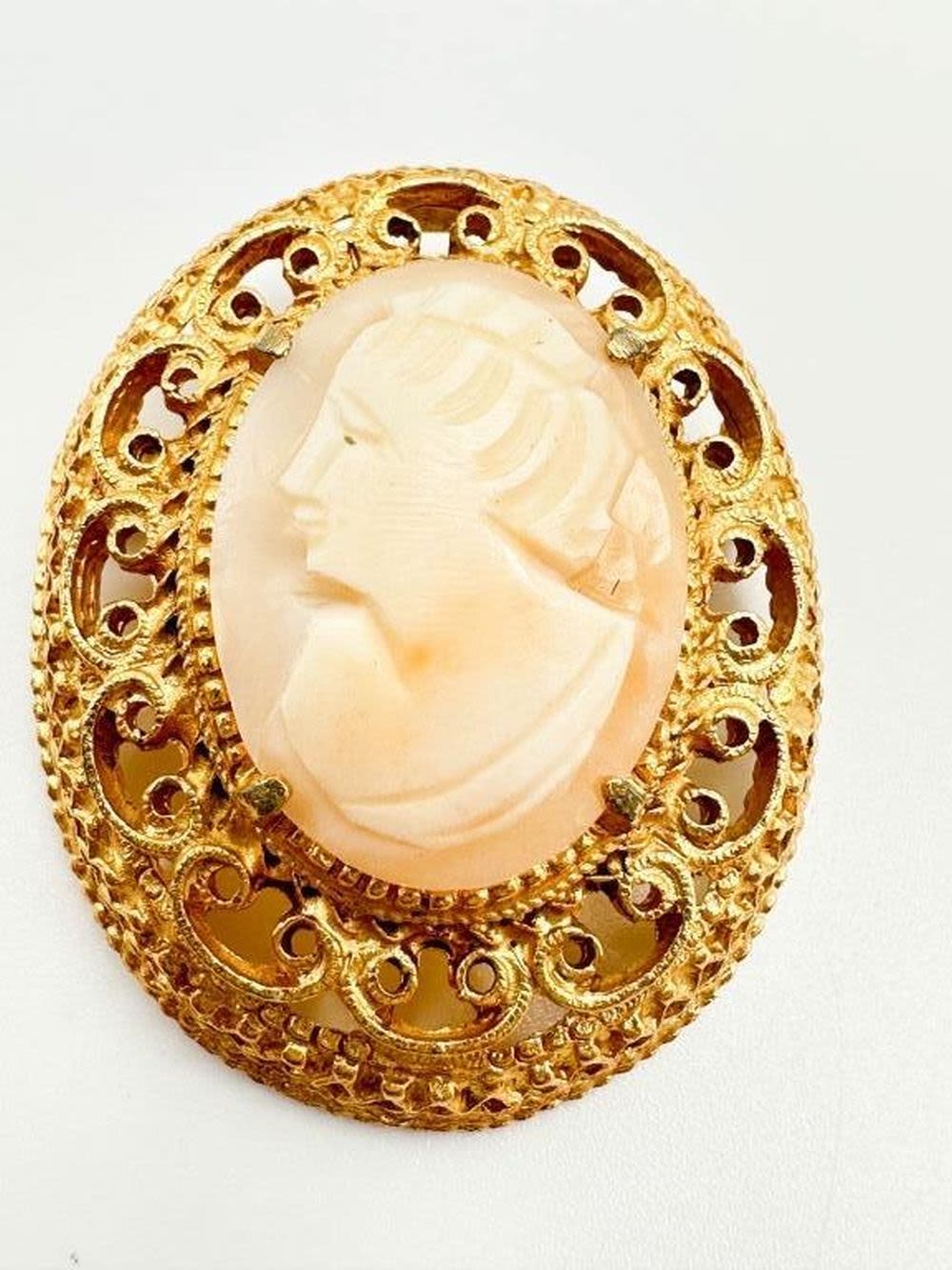 FLORENZA SIGNED AMAZING CAMEO BROOCH, GORGEOUS