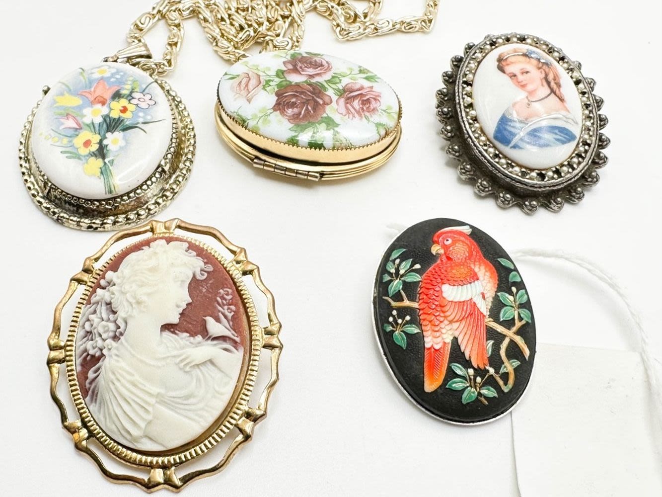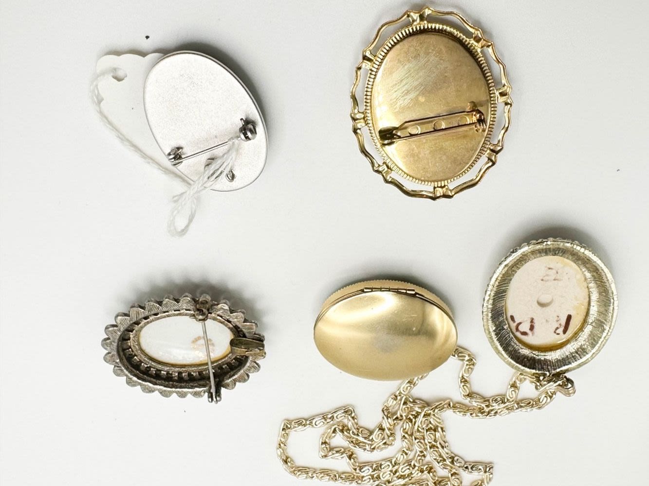 LIMEOGES CAMEO SILVERTONE LARGE BROOCH AND OTHER LARGE CAMEO BROOCHES