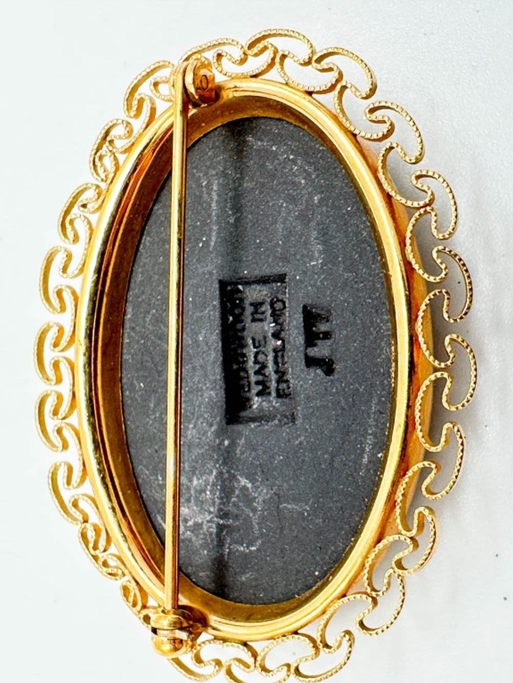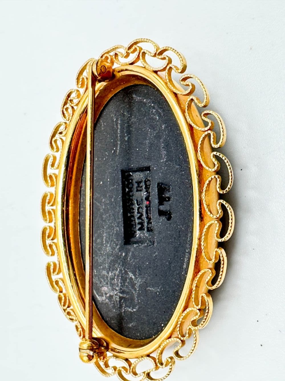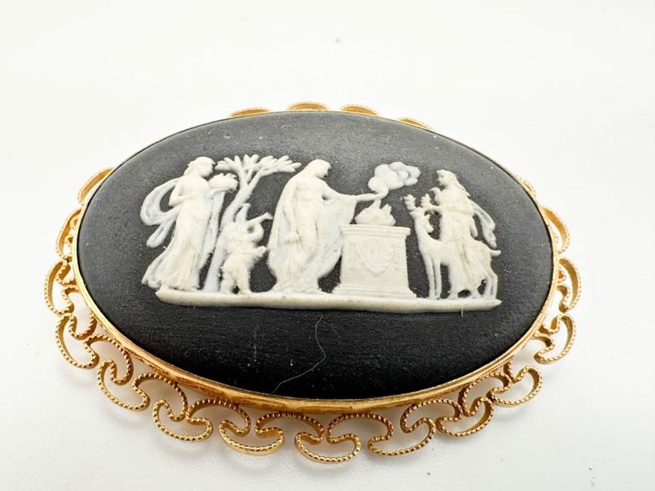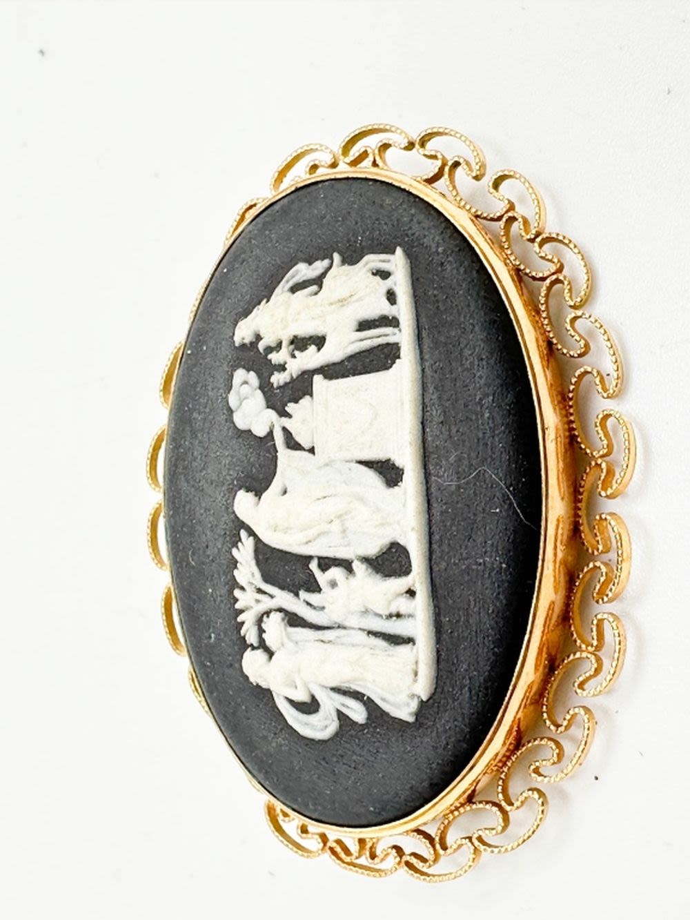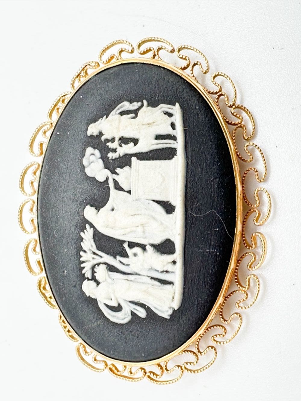 WEDGEWOOD CERAMIC BLACK AND WHITE BROOCH,SIGNED WEDGEWOOD