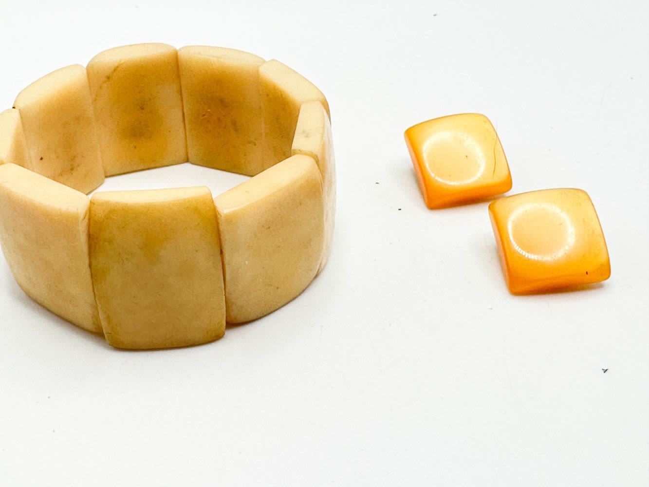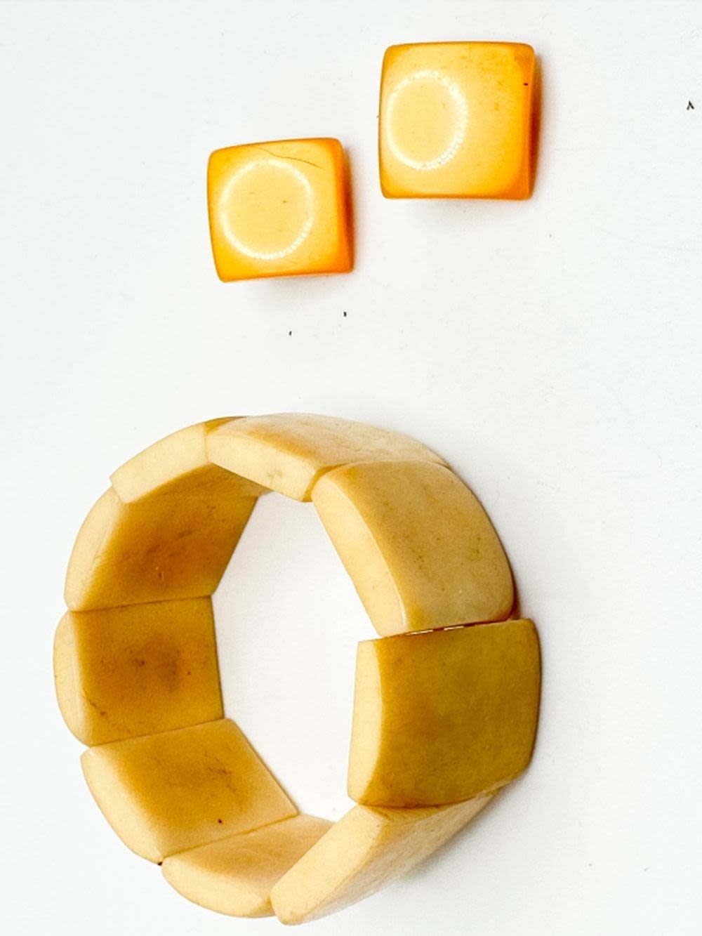 VINTAGE BRACELET, EARRINGS, UNKNOWN MATERIAL ?