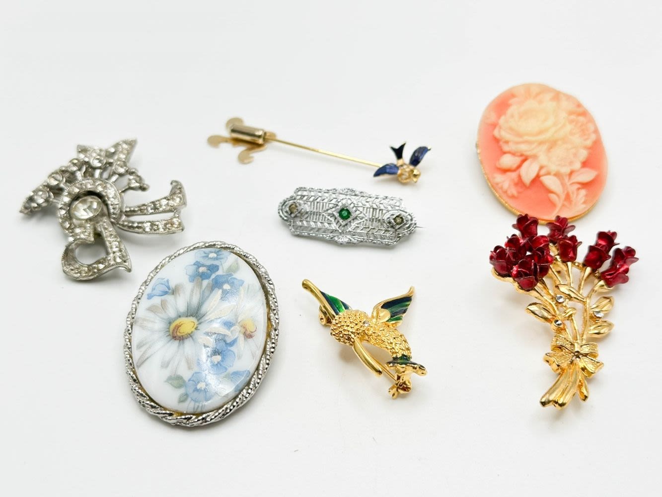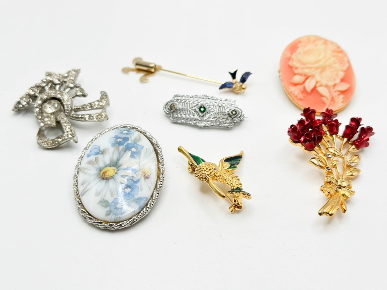CAMEOS ASSORTED BROOCH FLORALS , ROSES, BIRD, STONES