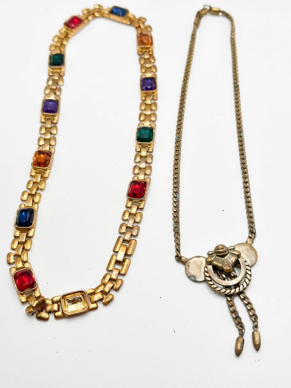 2 ANTIQUE? NECKLACES , ONE MISSING STONE