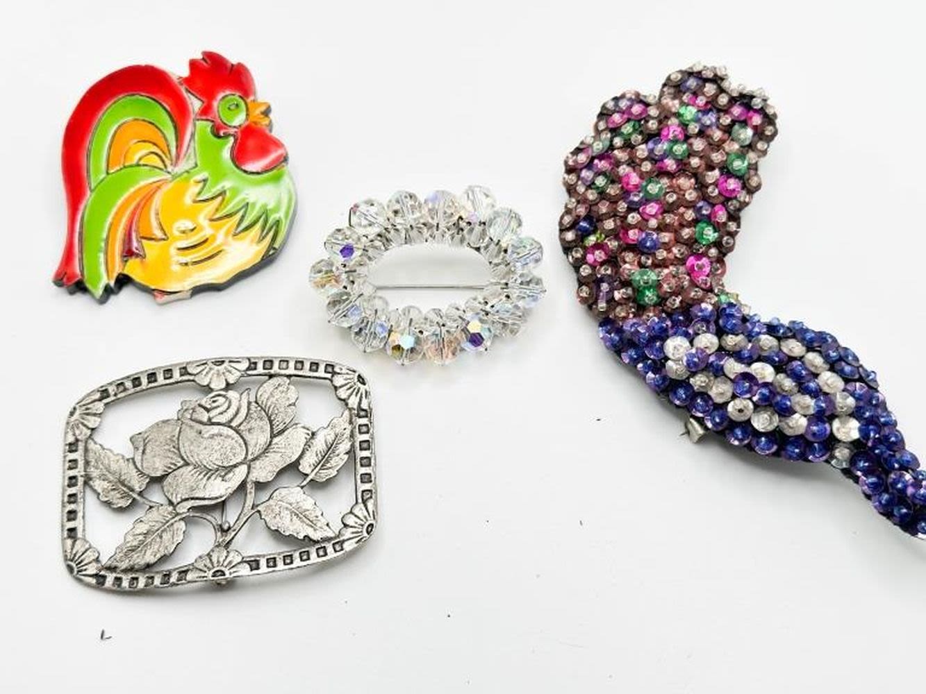 BEADED BROOCH, ROOSTER BROOCH, OVAL BROOCH