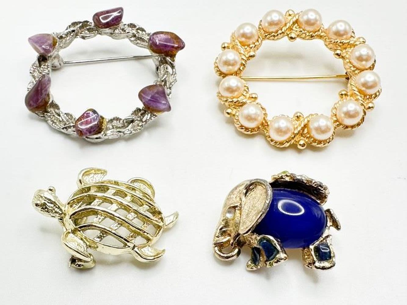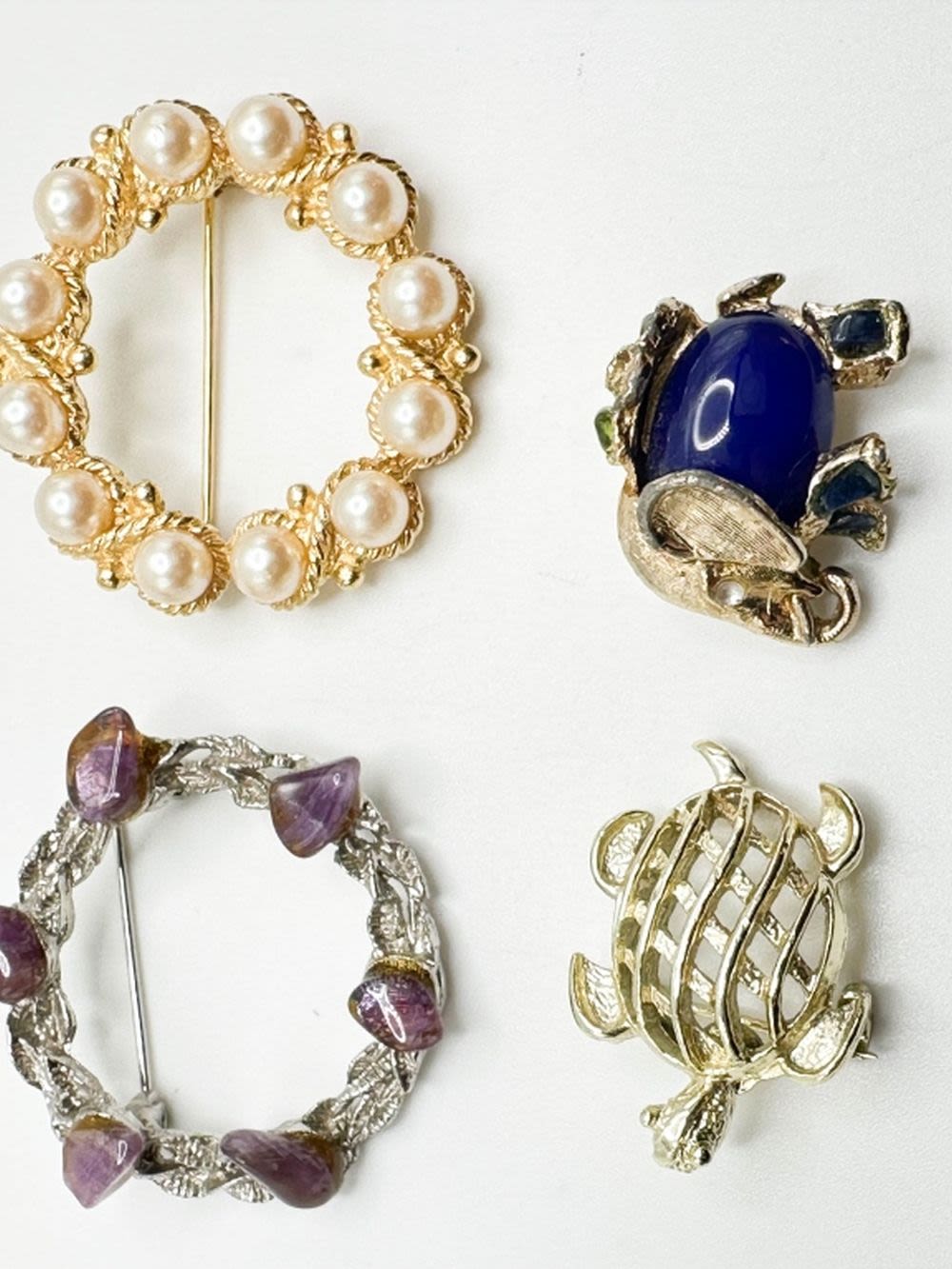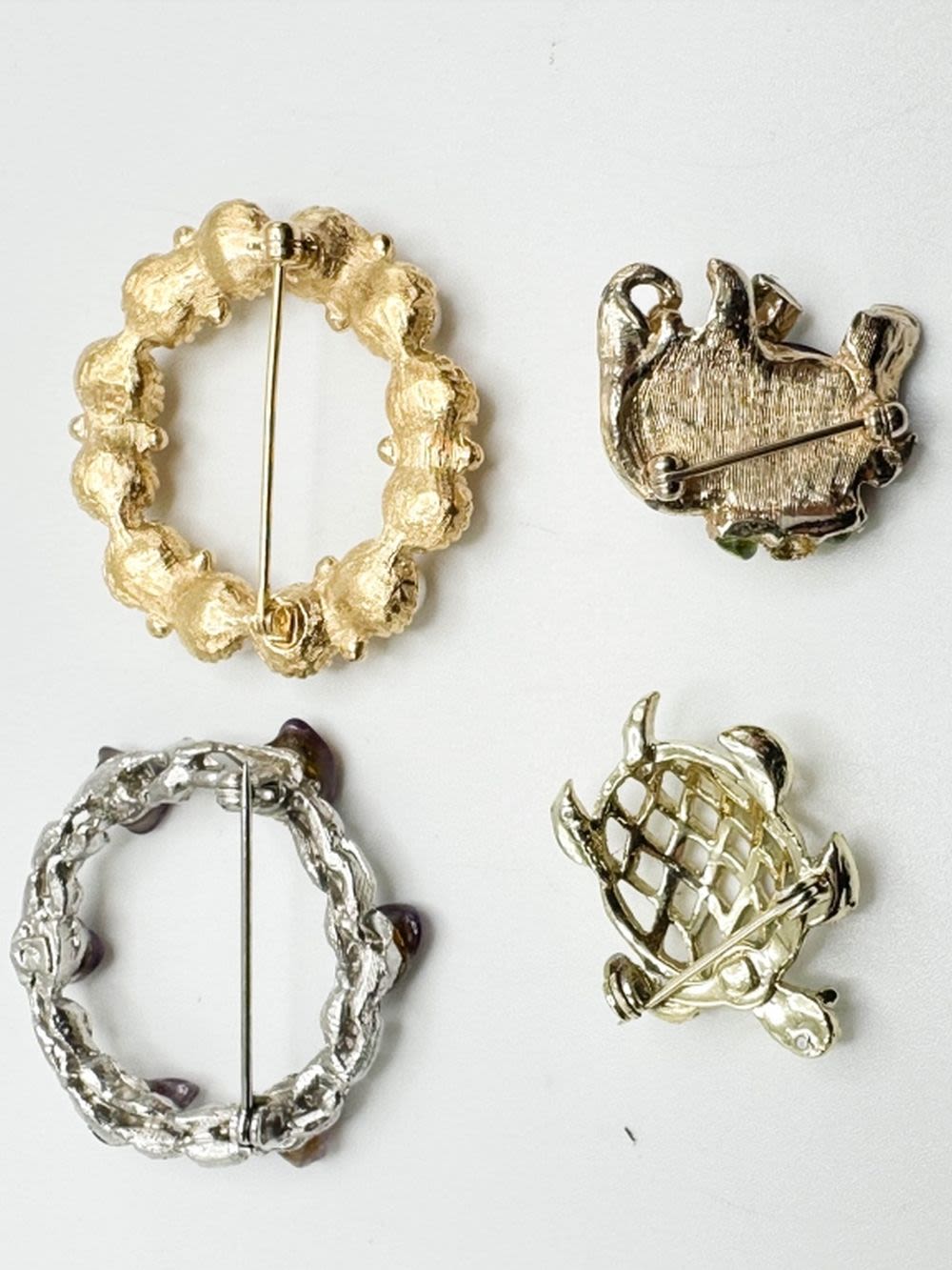 TURTLES AND CIRCLES BROOCHES , BLUES PURPLES CREAMS