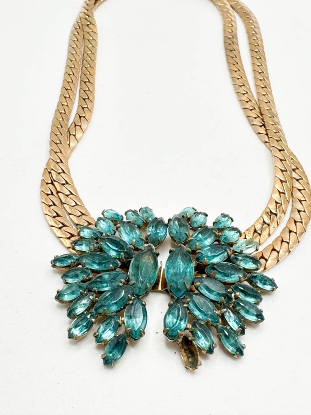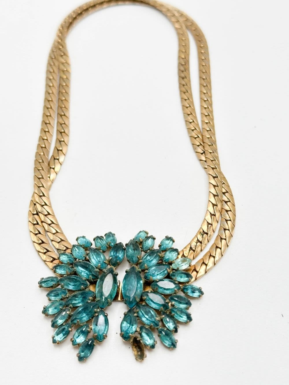 STUNNER STONE NECKLACE IN AQUA COLOR WITH GOL TONE CHAIN