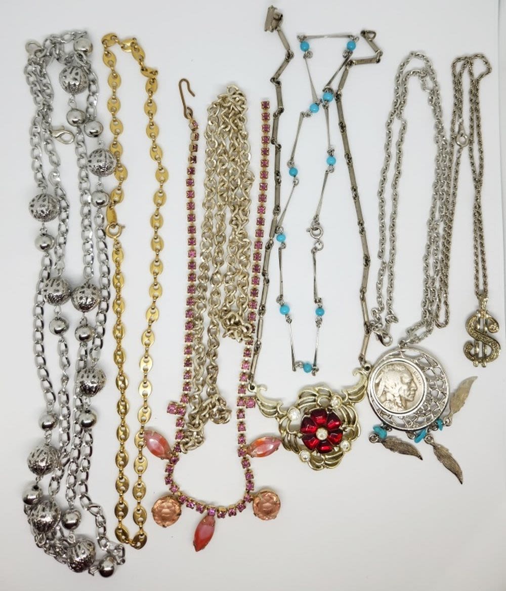 NECKLACES ASSORTMENT , VINTAGE ITEMS , SOME WITH STONES