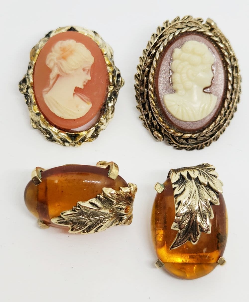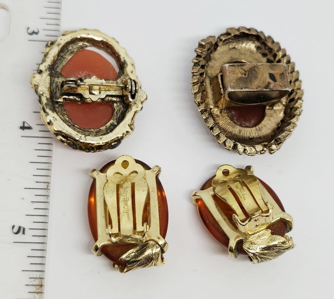 WHITING DAVIS SIGNED EARRINGS SET AND OTHER VINTAGE CAMEO CLIPS