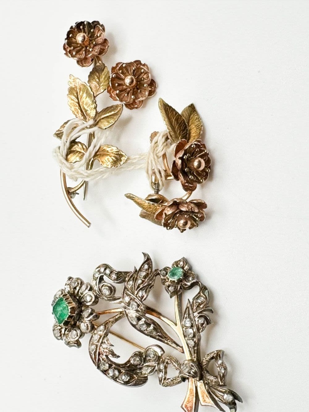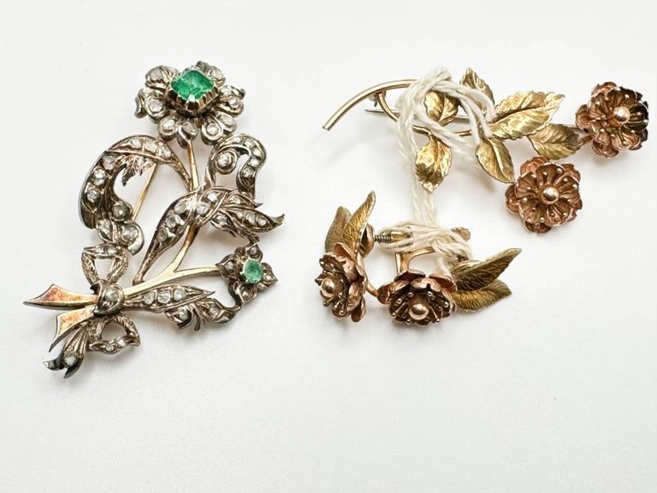 ANTIQUE? FLORAL BROOCHES WITH STONES