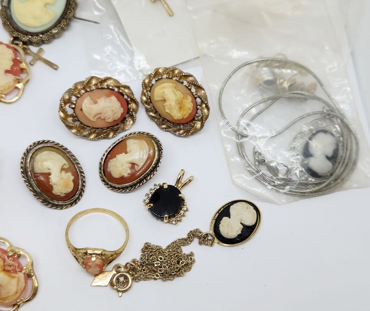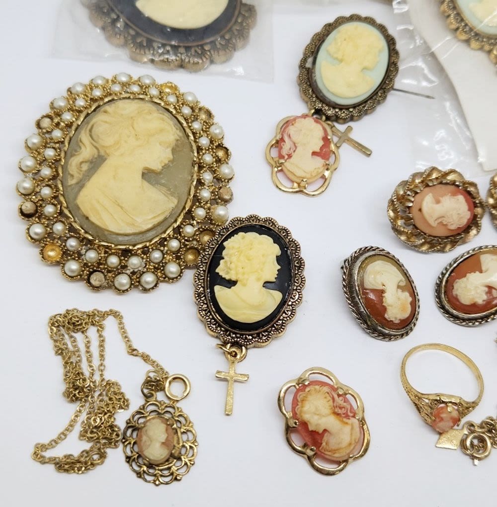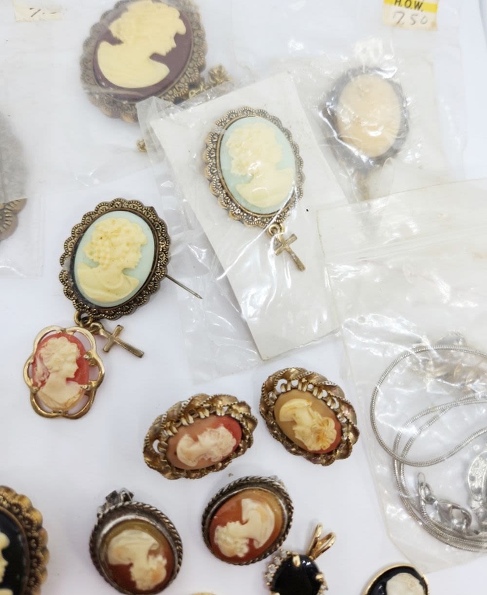 LARGE CAMEO COLLECTION , BROOCHES AND MORE