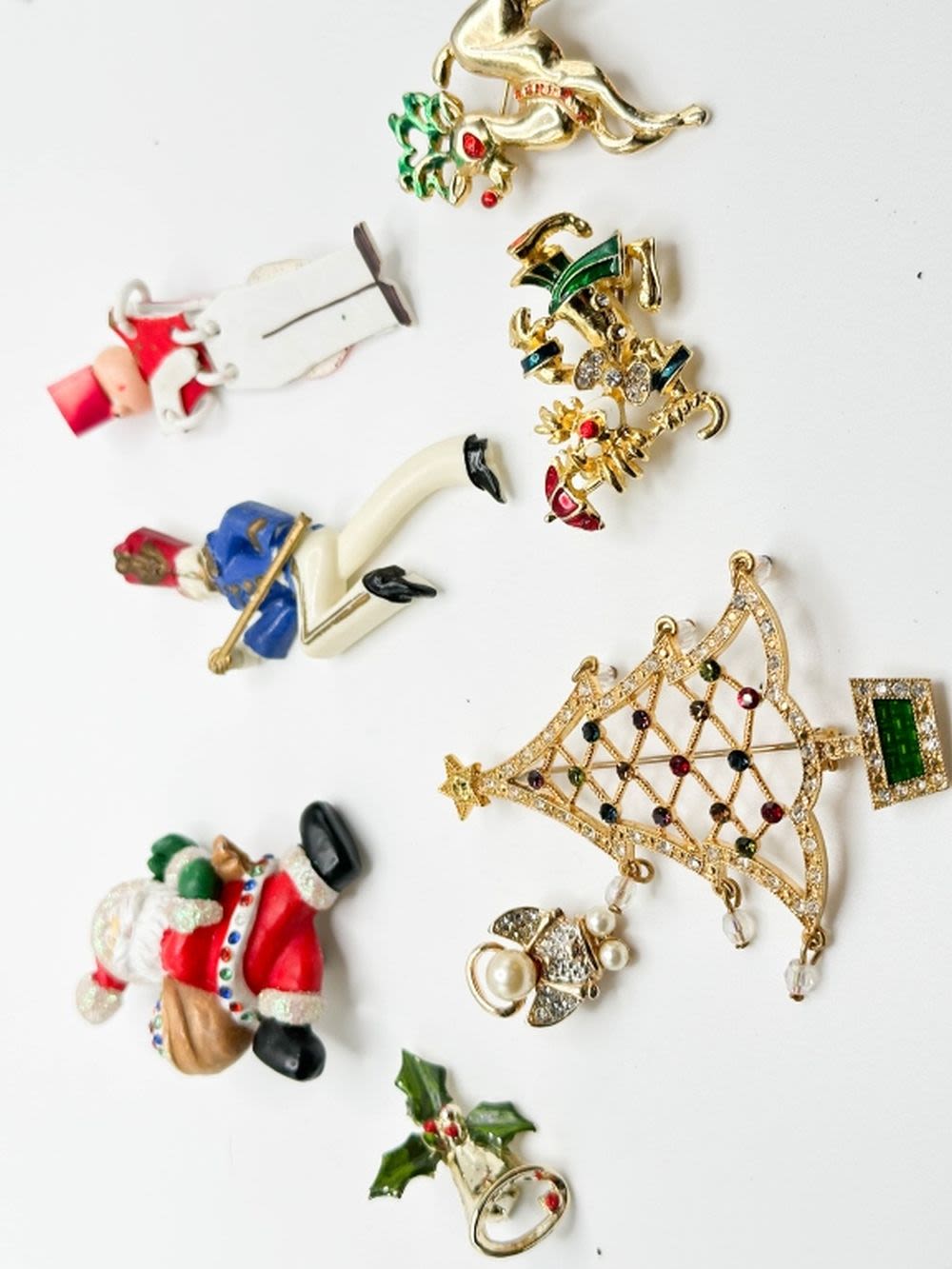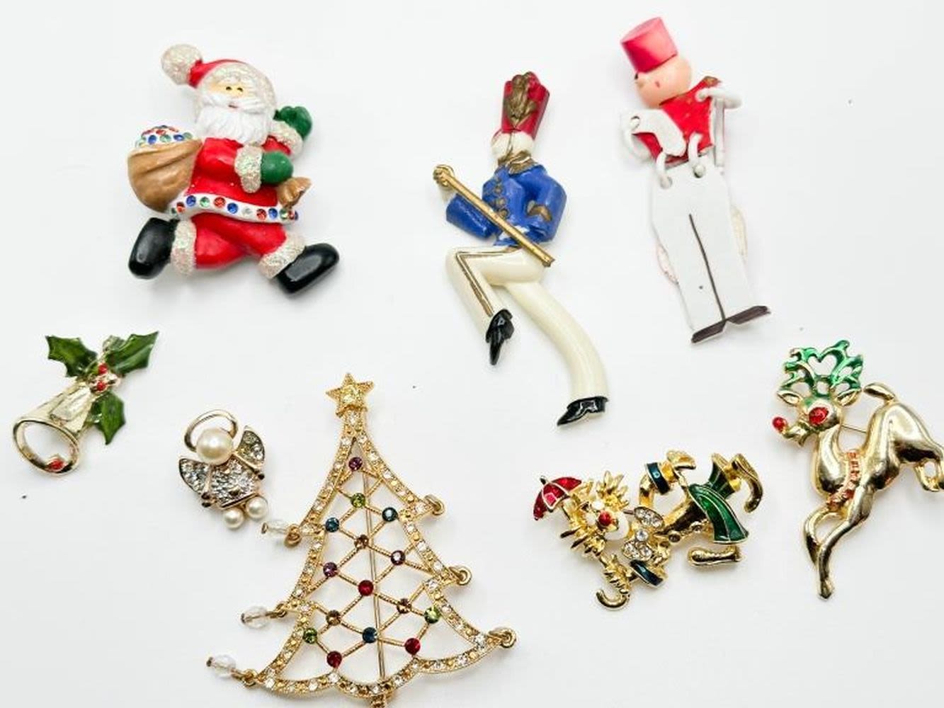 CHRISTMAS ASSORTED BROOCHES, TREE, SANTA, HOLLY ++++