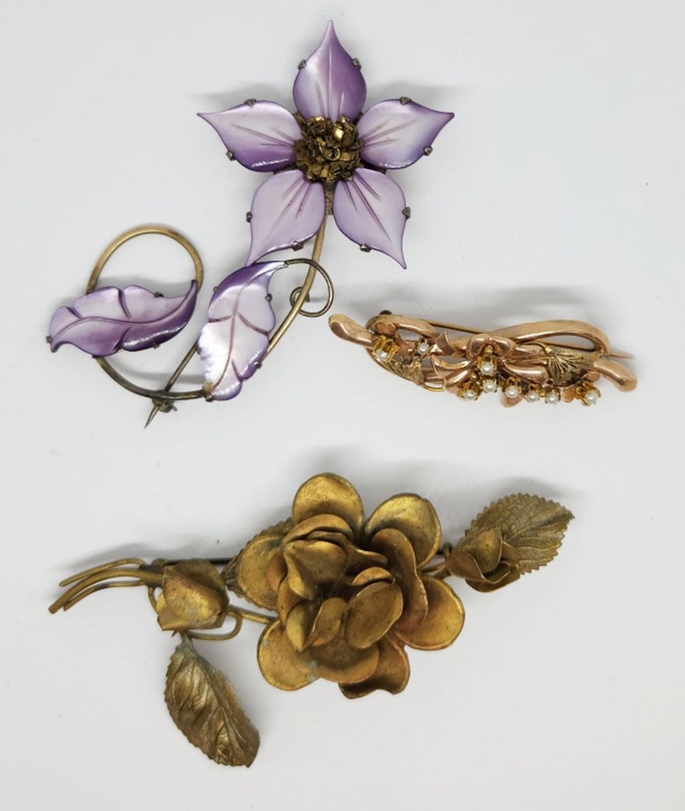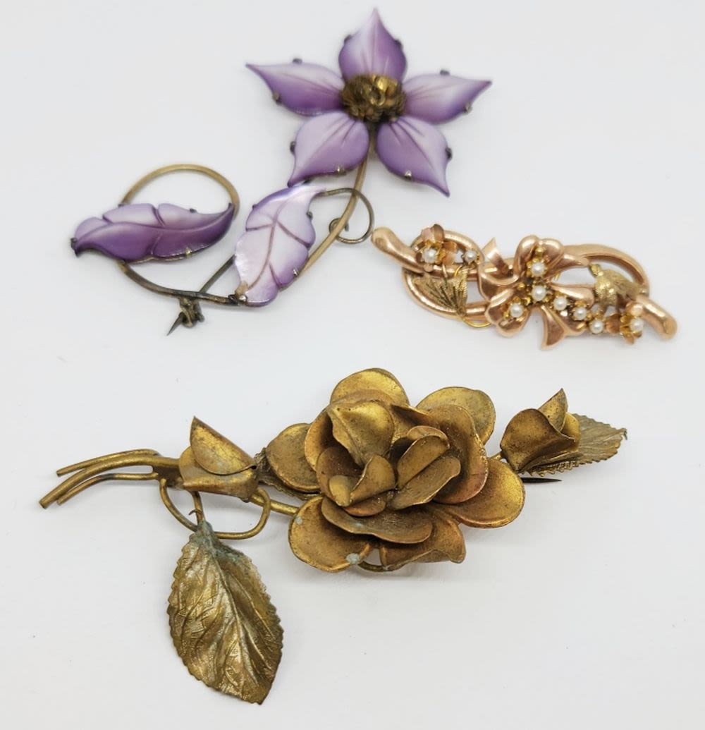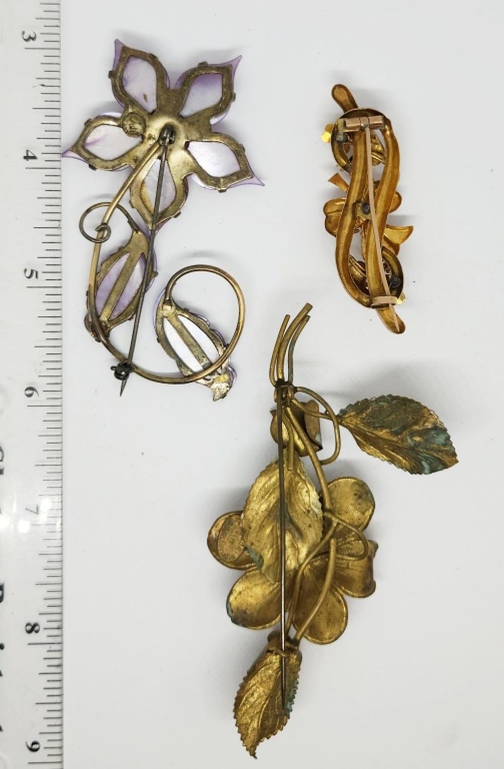 ANTIQUE BROOCHES, ONE C CLASP, 1 PURPLE PASTEL COLOR , PONE SMALLER C CLASP